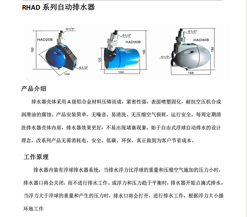 エアコンプレッサ貯蔵タンク全自動排水器ゼロ損失放水弁エアポンプ圧縮機RHAD-30B