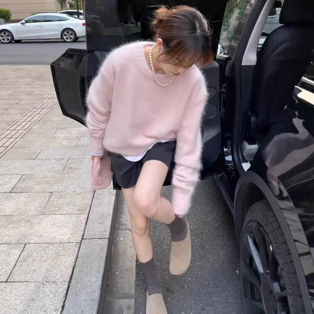 奶呼呼减龄粉色水貂绒软糯毛衣女秋冬慵懒风高级感针织衫内搭上衣