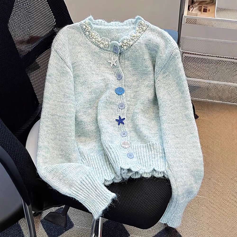 自留金推奨 ~ ホッチキス丸首長袖ニットカーディガン女性2025春秋新ソフトモチモチセーターコート潮
