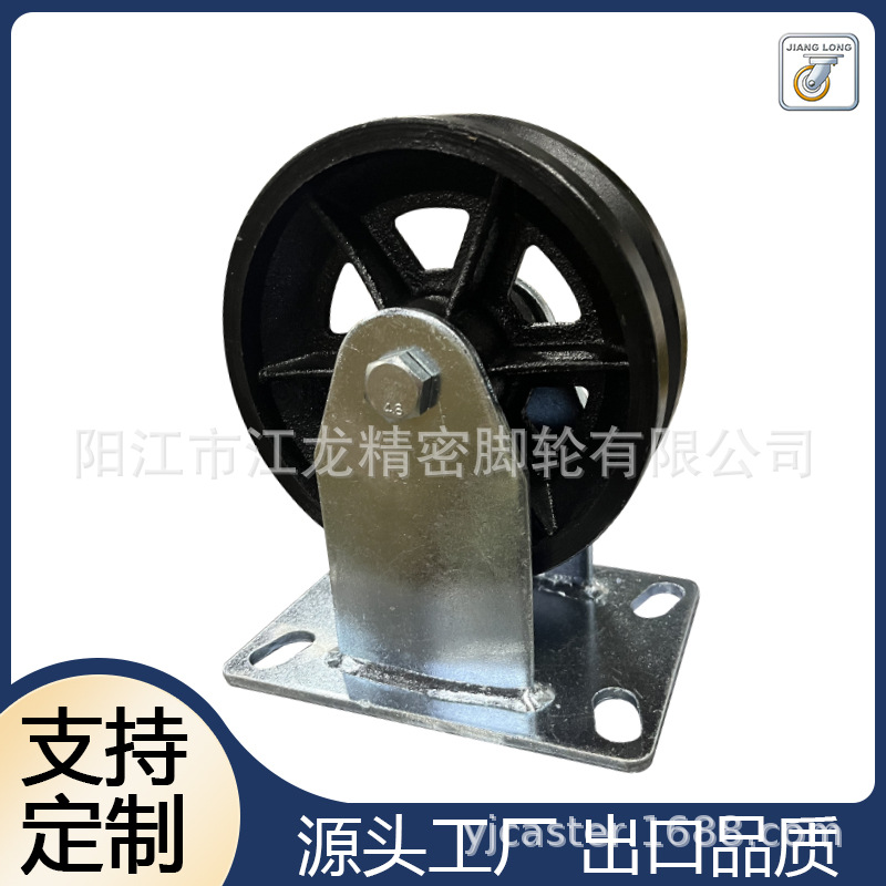 Jianglong 5inch V溝中型および重量級キャスター全鉄U字型鋳鉄ホイール移動棚高耐荷重トラック固定ホイール