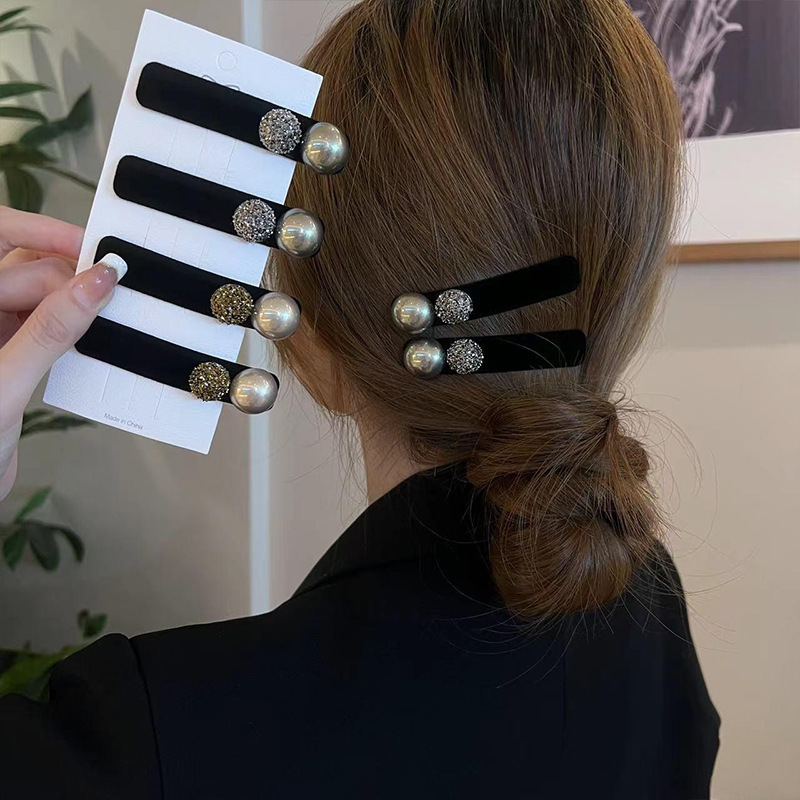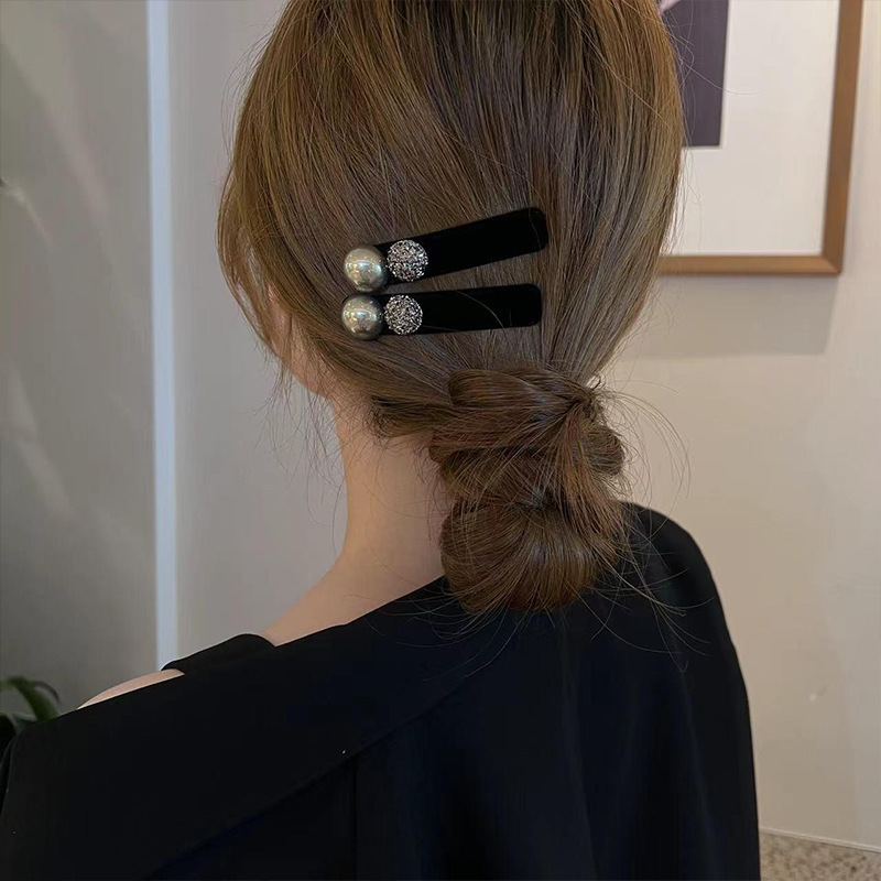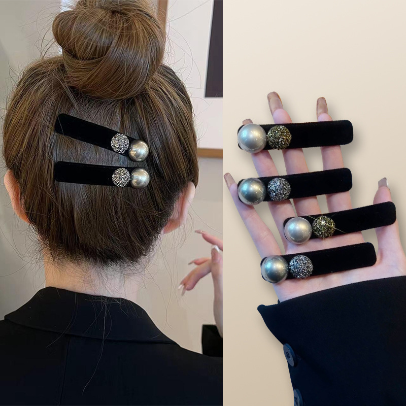 2025新商品の黒い水ドリルのヘアピンのベルベットの小香風の気質は少女の心を挟んで前髪を挟みます。