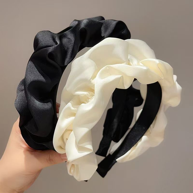 新しい木の耳元の高級感のしわの気質の百合の髪の高い頭の頂のカチューシャの髪飾りの顔を洗って髪の毛のinsを抑えます。