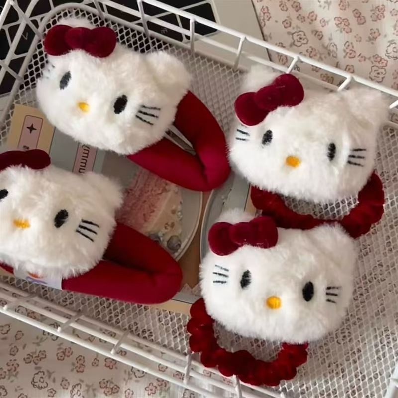 かわいいぬいぐるみのkitty猫のヘアピンアンゴラの赤い蝶結びの髪輪前髪クリップ漫画bbクリップの髪飾り女