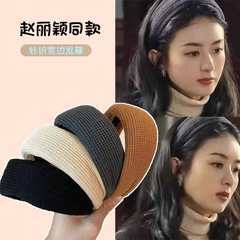 韓国版純色メリヤス広縁平板カチューシャ気質百合ins復古シンプルネット赤カチューシャ