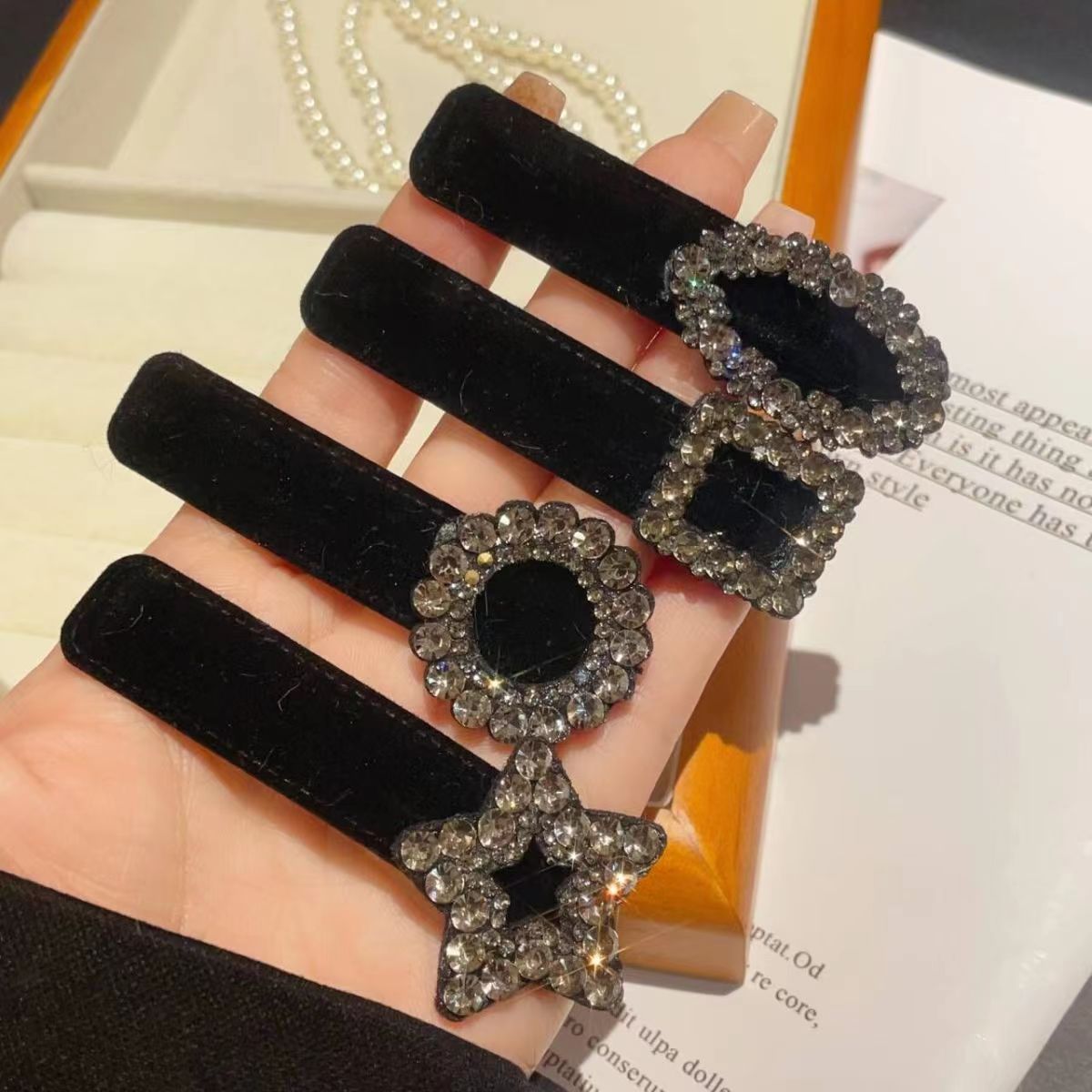 秋冬黑色小香风丝绒BB夹气质女后脑勺发夹水钻高级感边夹发卡夹子