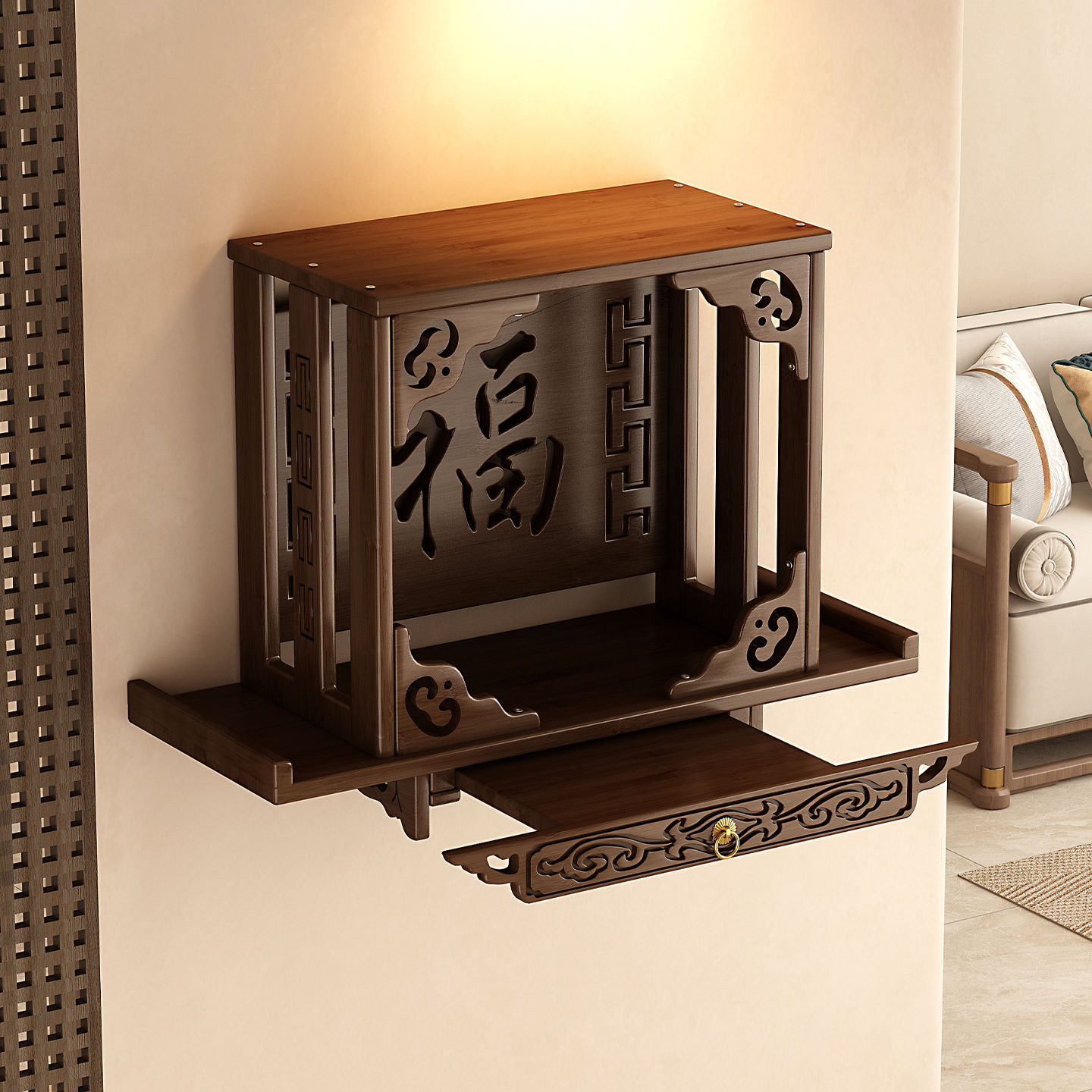 佛龛立柜楠竹家用壁挂式小型神龛供桌观音佛像供台简约香炉供奉柜