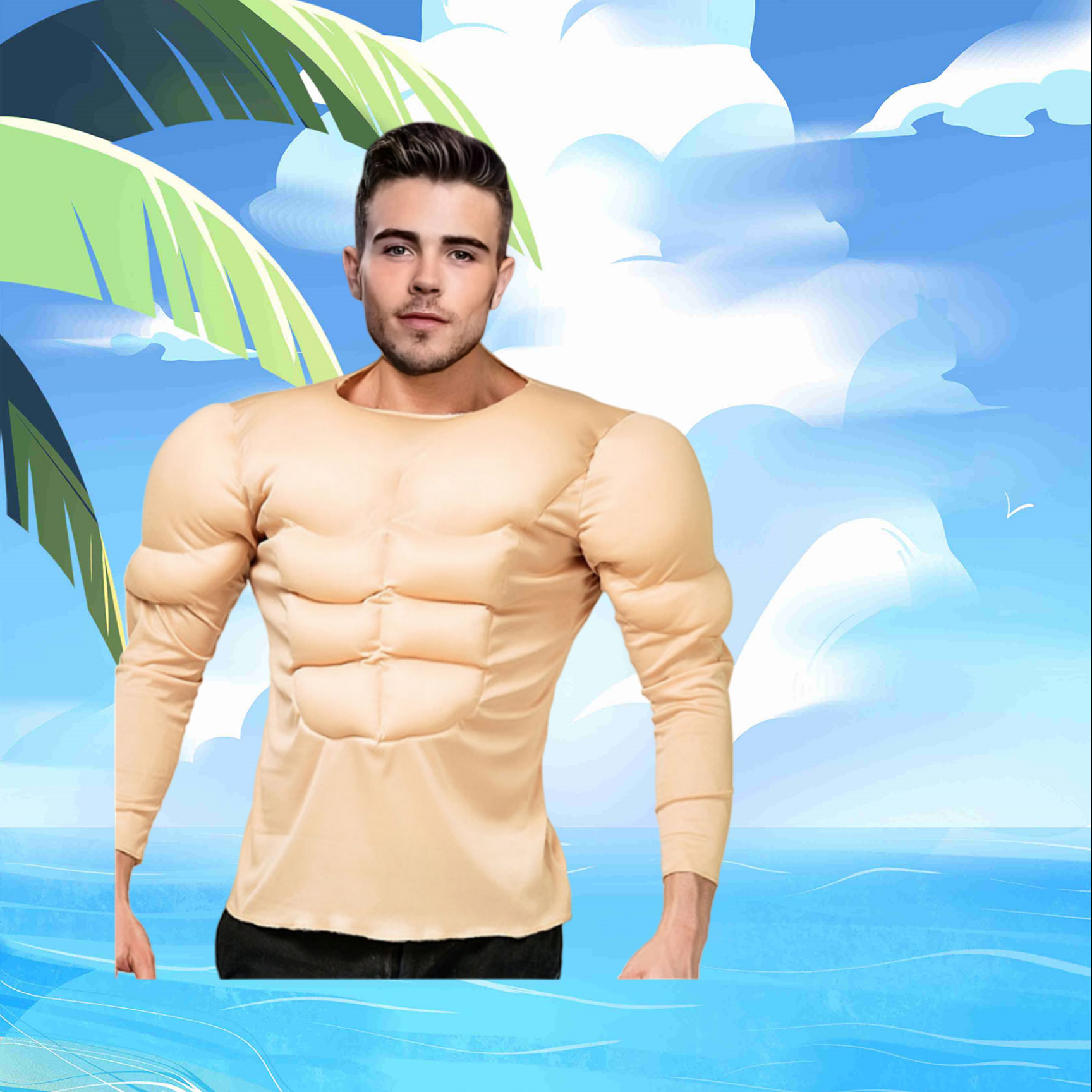 大人の筋肉の服装の筋肉の男のtシャツのハロウィンの役は越境の偽の腹筋のtシャツのパーティーの服装の卸売りを演じます。