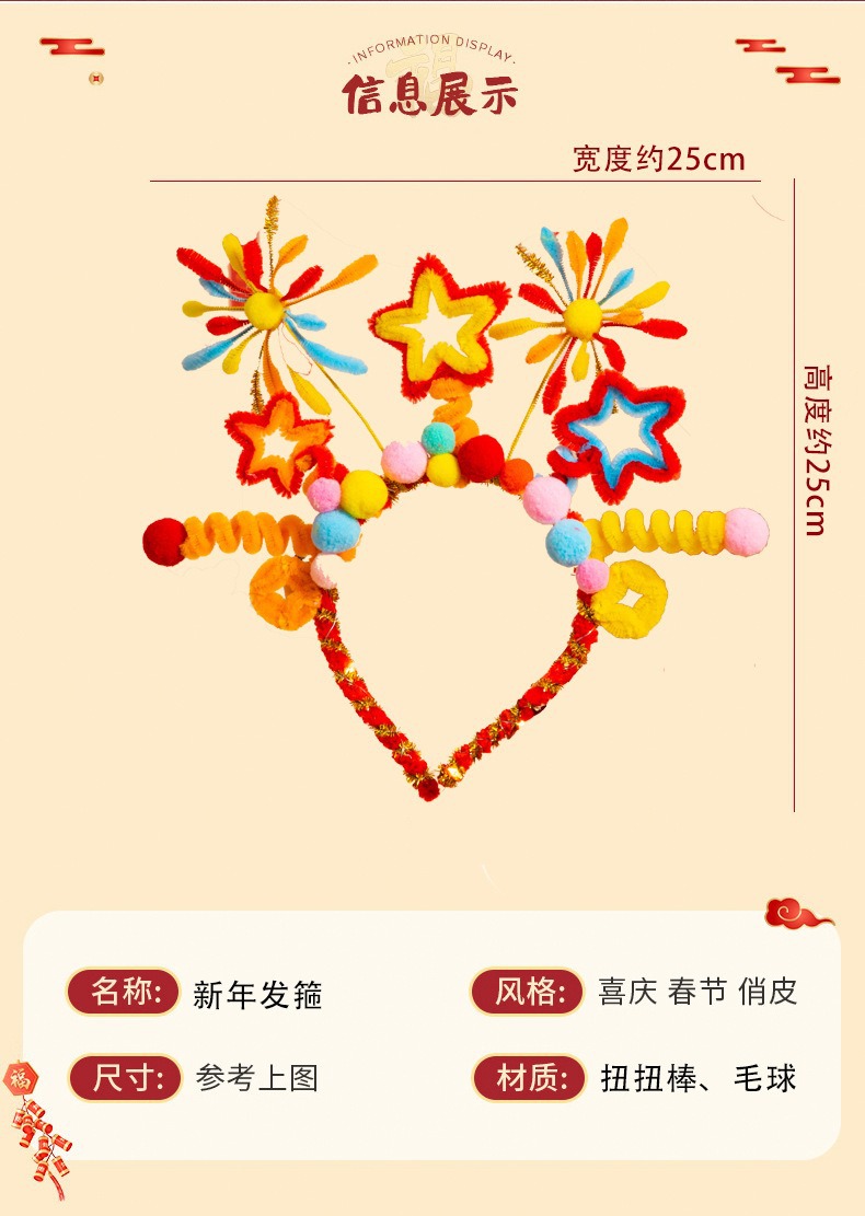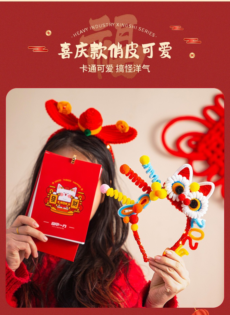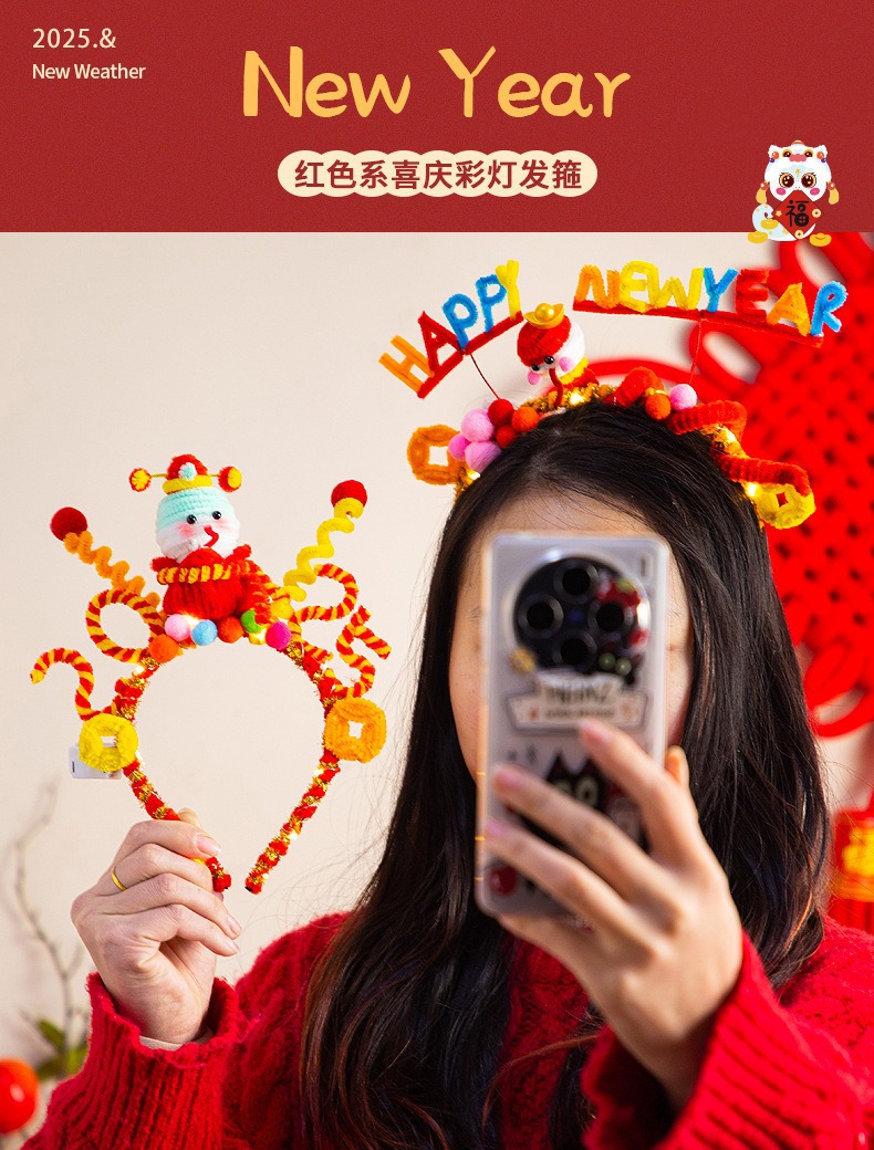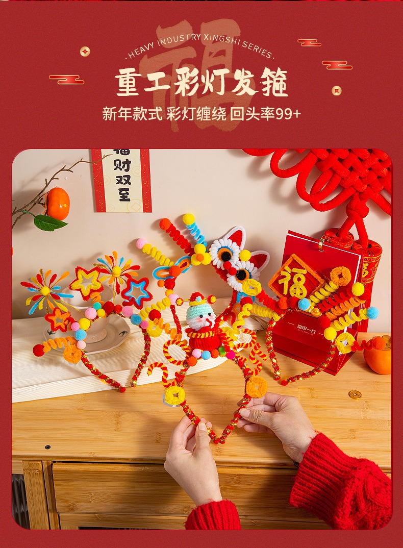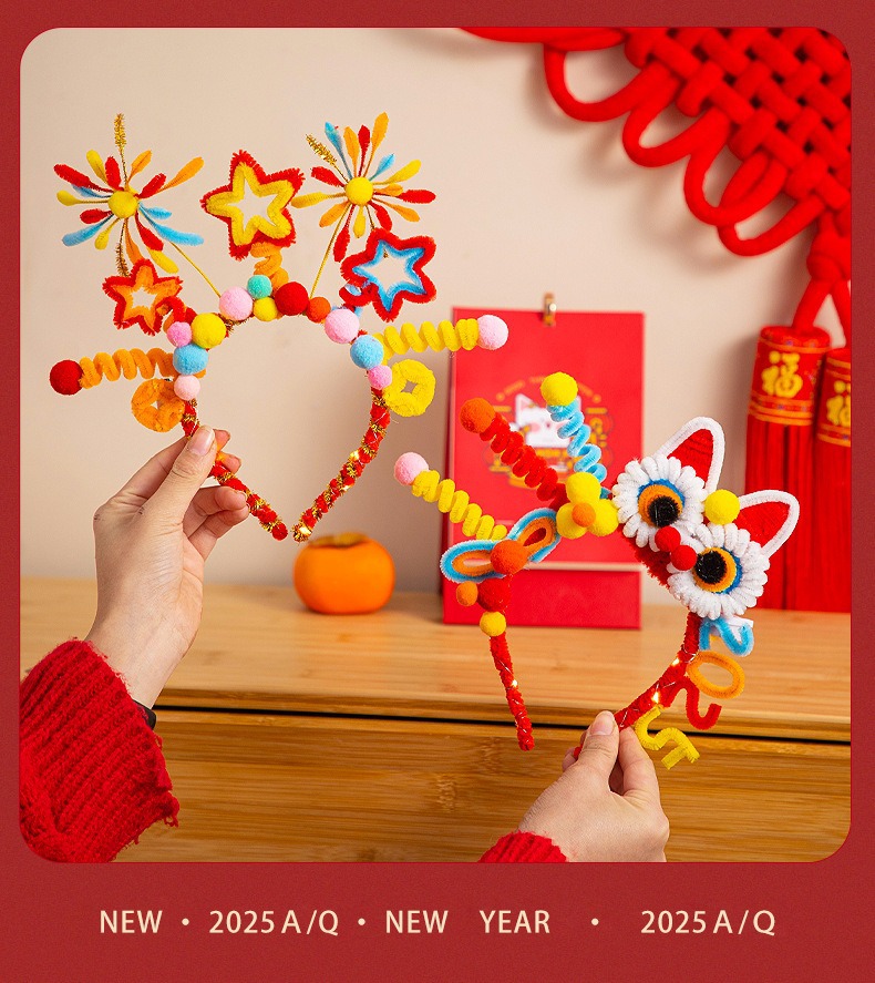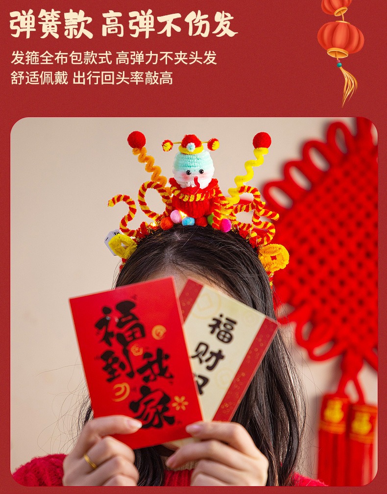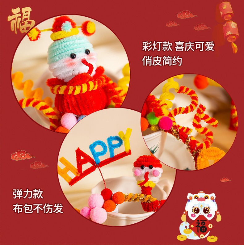 2025年新年手作りプレゼント新年カチューシャツイストスティック飾り蛇年発光カチューシャdiy旧正月飾り