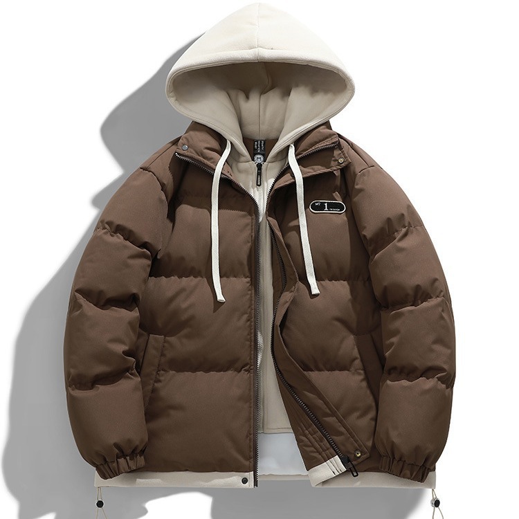 偽の2つの綿服の男性の冬のゆったりとしたカジュアルな厚手の保温綿服のコートの日本のファッションの帽子の綿入れの卸売り