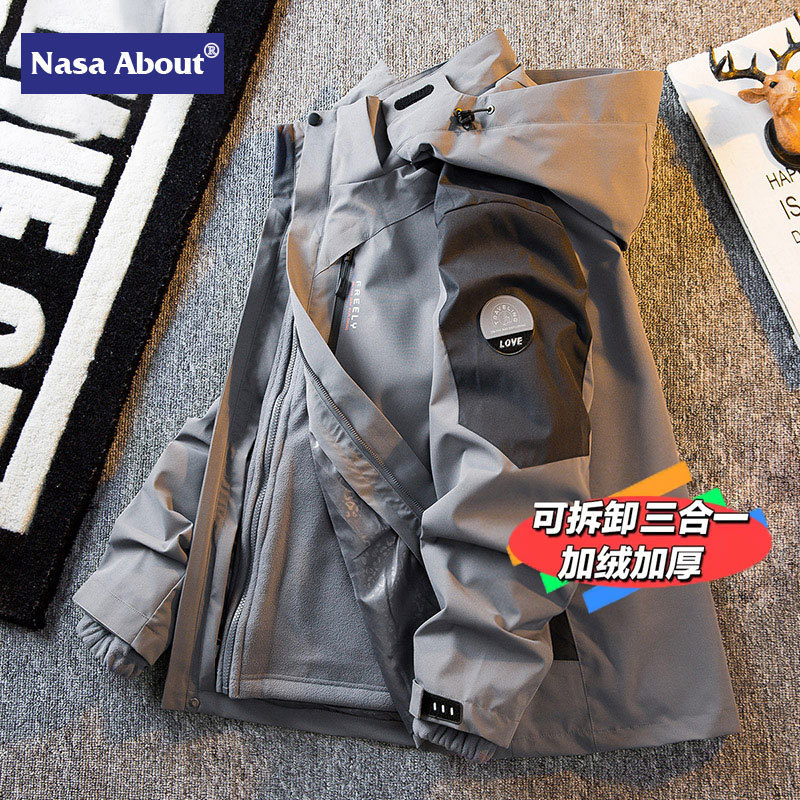 NASA山系メンズジャケット秋スリーインワン取り外し可能インナーウオッチ防风登山服潮牌カップルコート男