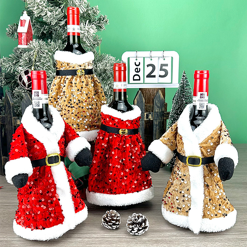 クロスボーダーの人気酒カバークリスマス装飾品スパンコールぬいぐるみ酒瓶カバー服酒袋酒瓶装飾クリスマス
