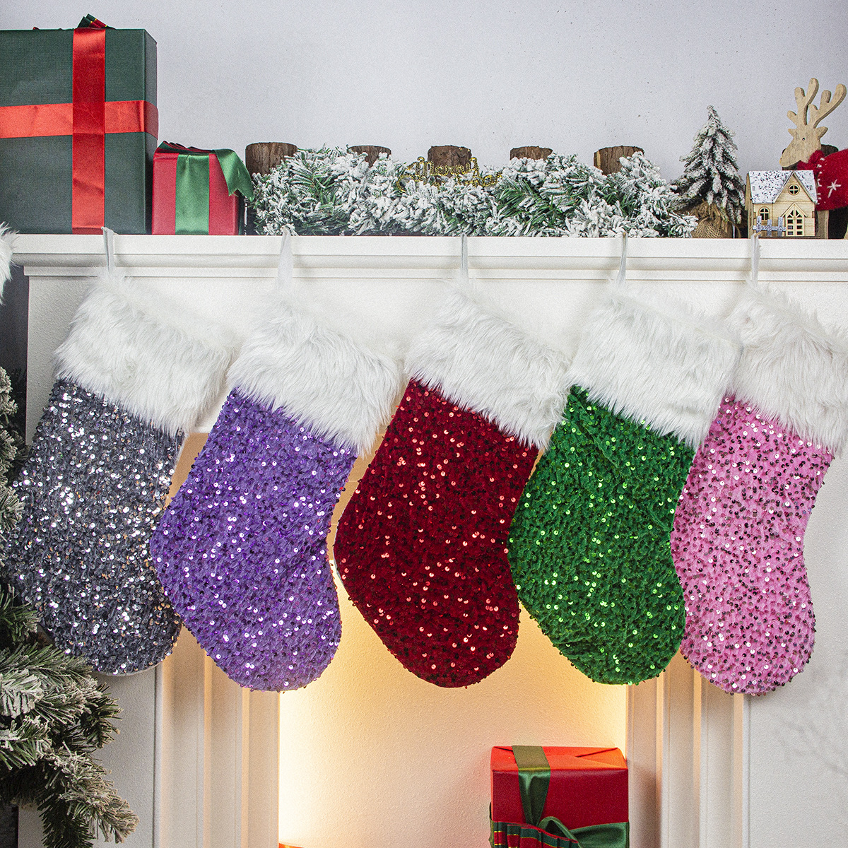 千弘クロスボーダー新品クリスマスプレゼントキャンディーバッグスパンコールぬいぐるみクリスマス靴下クリスマスツリーペンダントクリスマス装飾