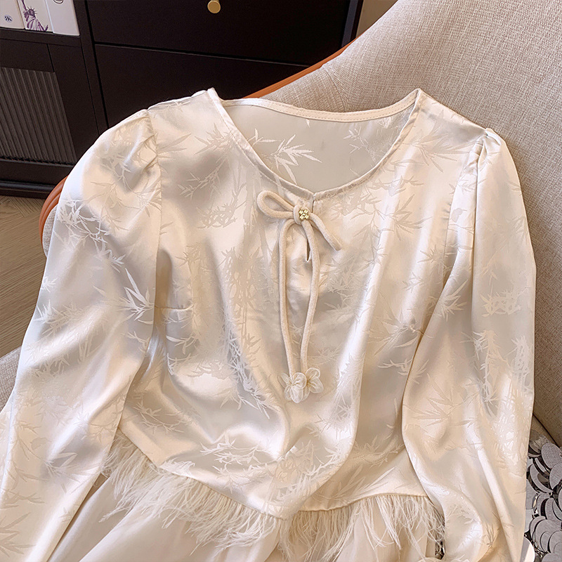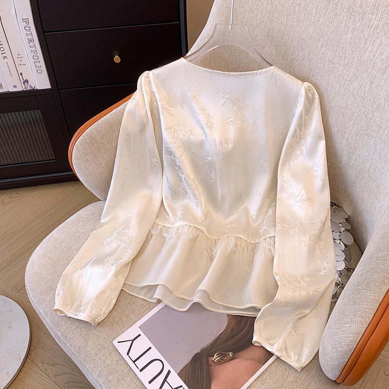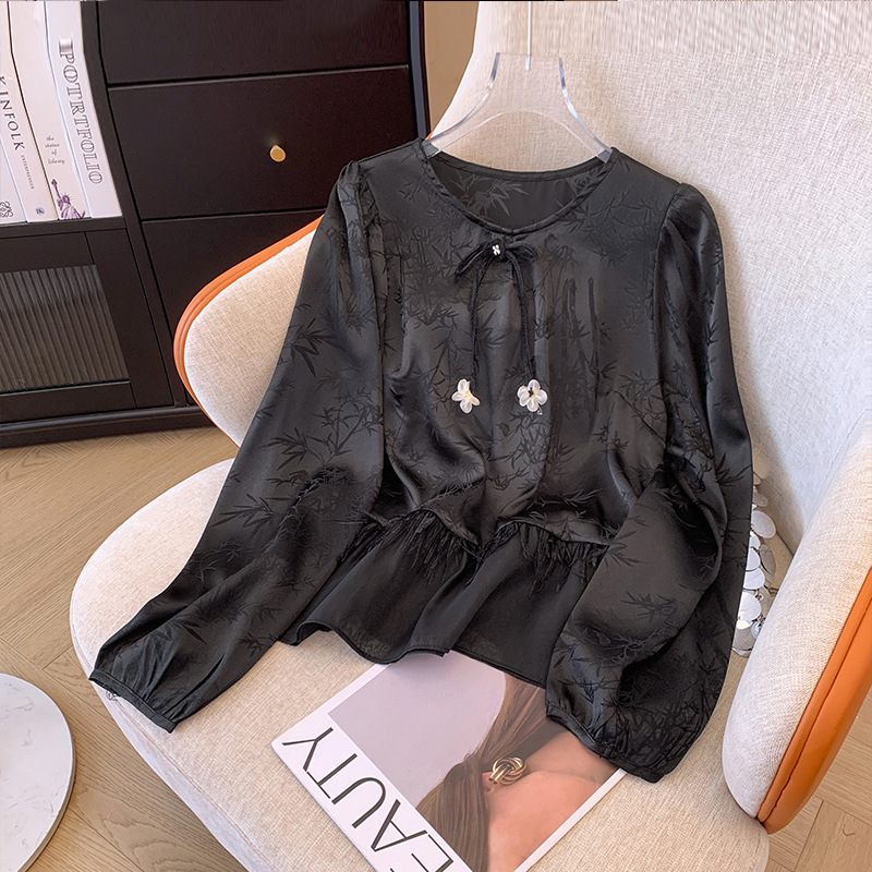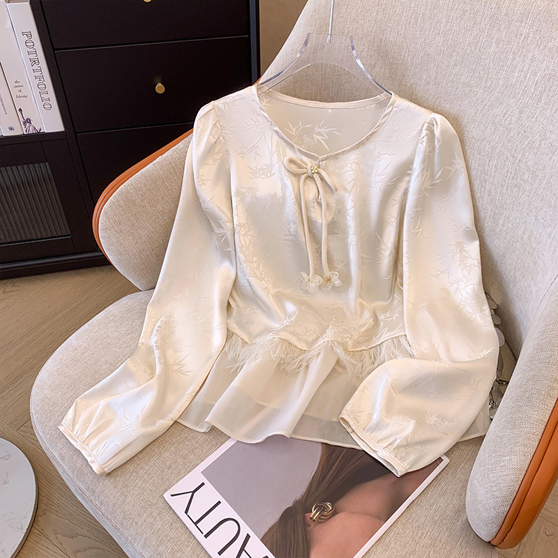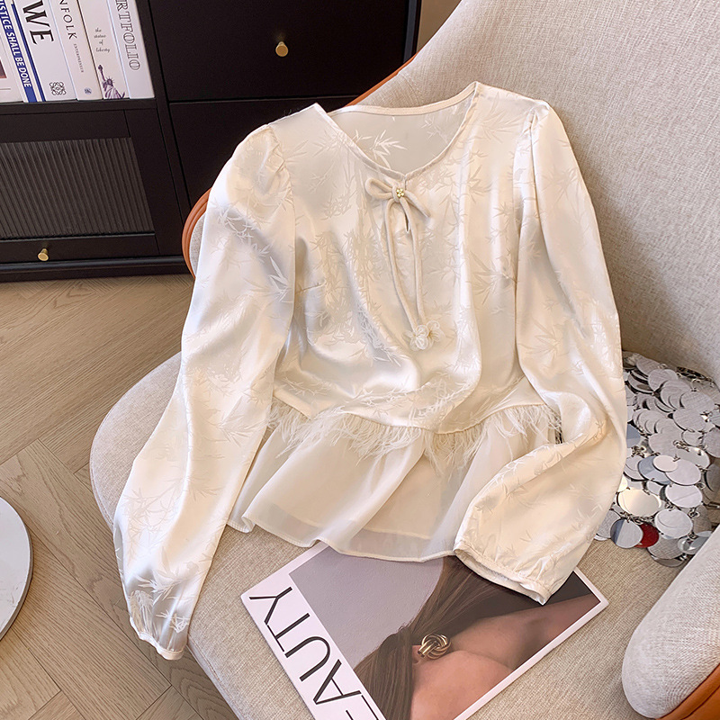 韓国版フリンジ2025春モデルの新型丸襟ストラッププリント羽長袖シャツ女性上着ファッションシャツ