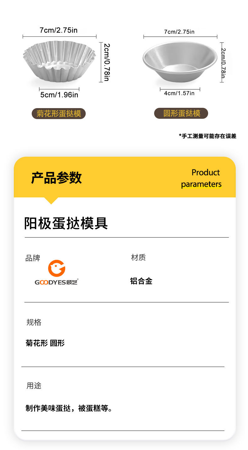 Y29-Y26铝合金蛋糕模具 菊花盏 烘焙模具 阳极蛋挞模 反复使用