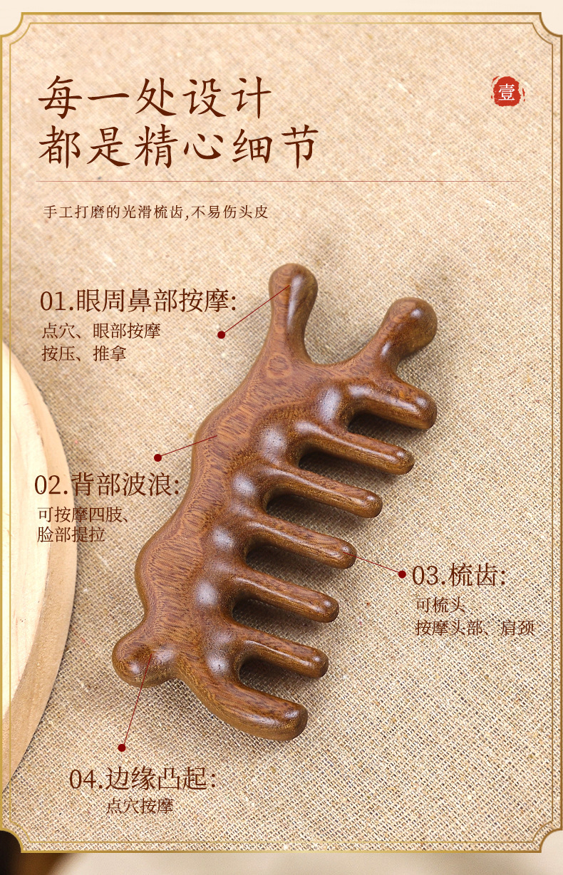 マッサージ櫛多機能頭部肩首掻爬養髪経絡櫛メーカーの卸売り木櫛木製櫛
