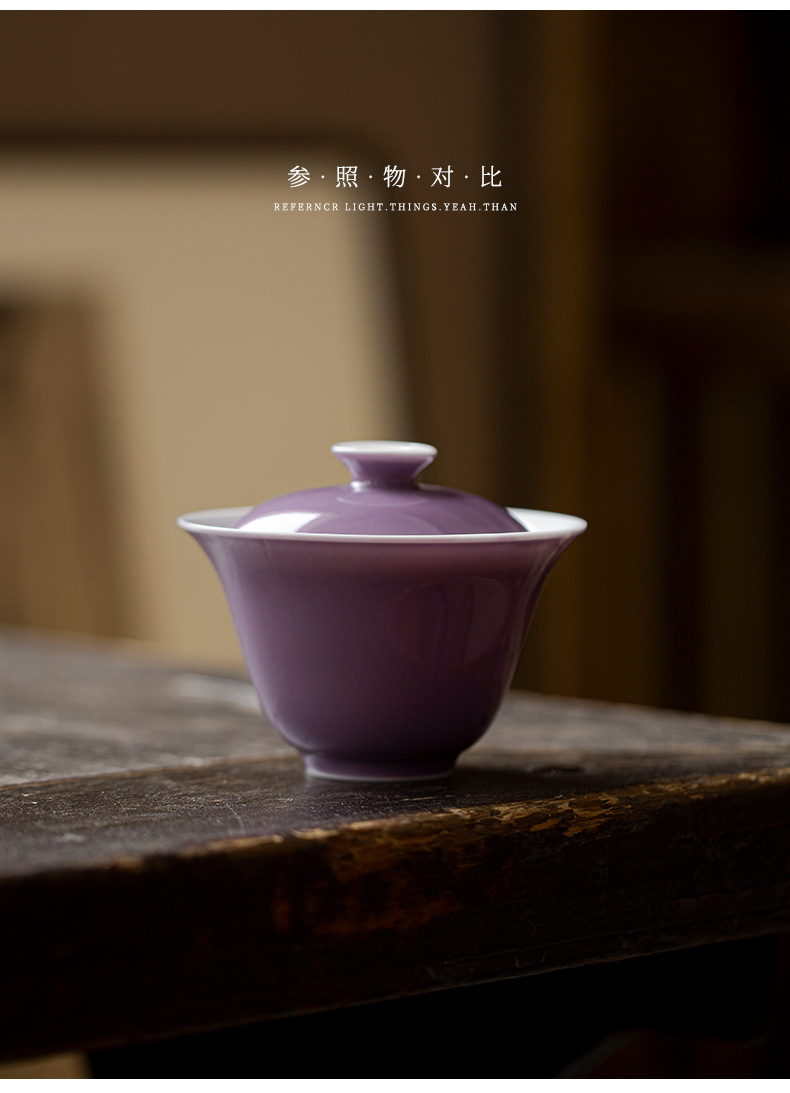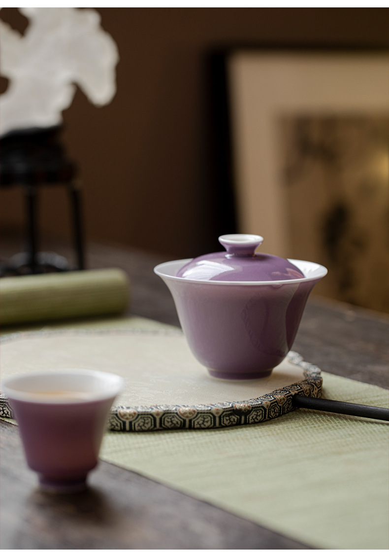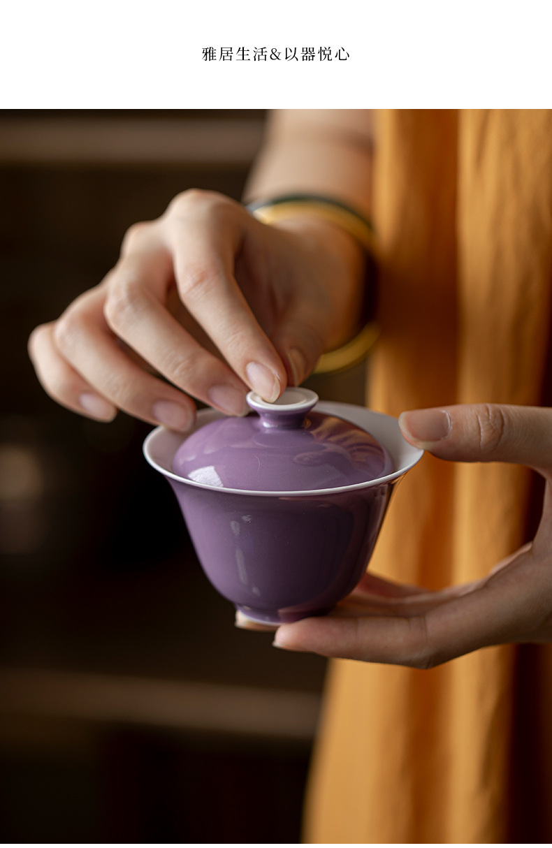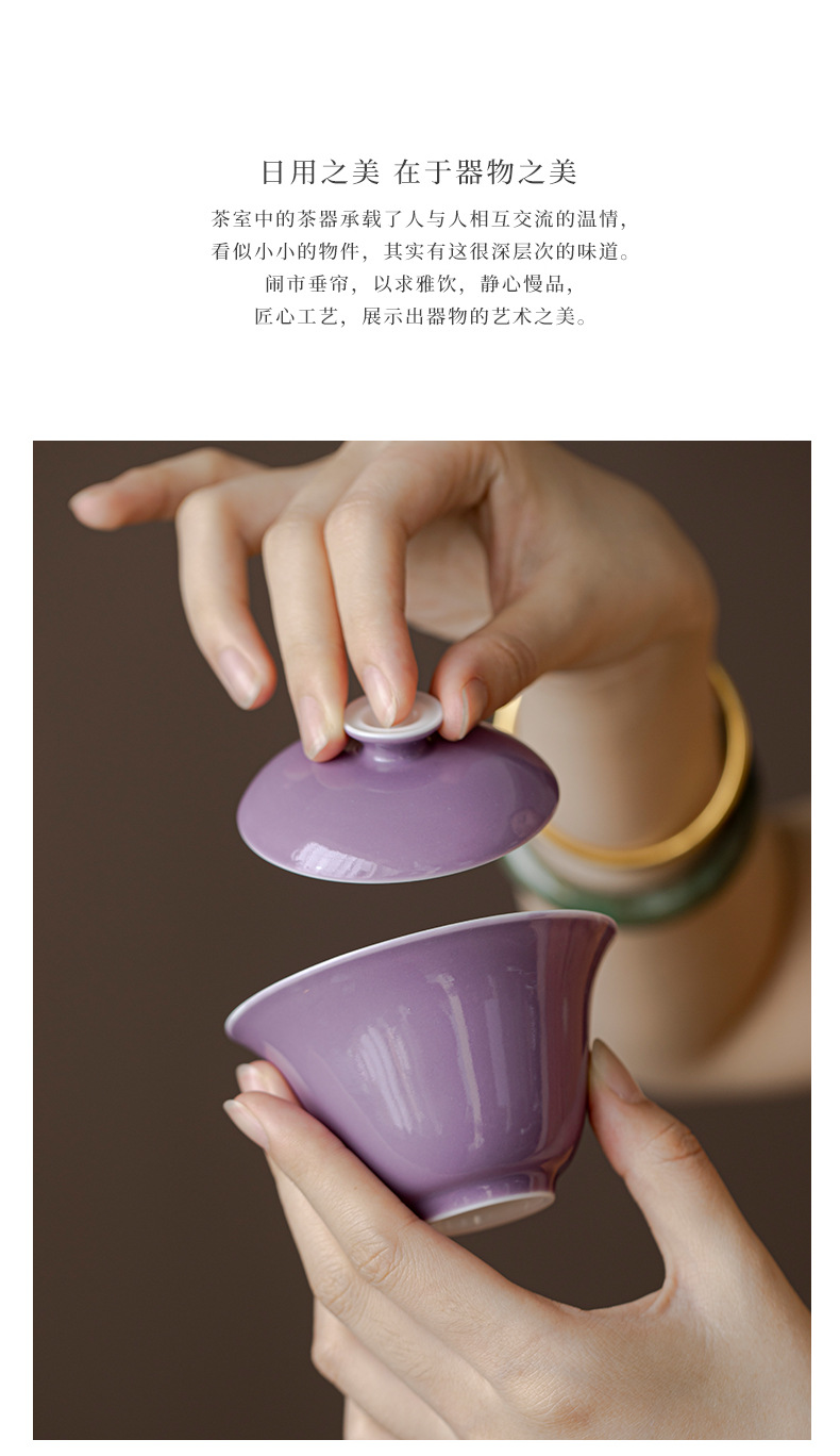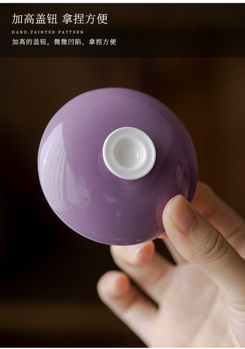 墨己木槻紫家庭用陶磁器蓋碗工夫茶器内釉松石緑薄胎泡茶碗紫蓋碗