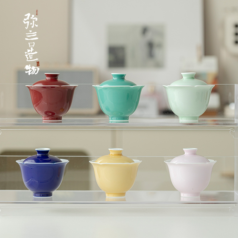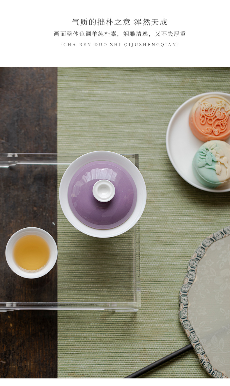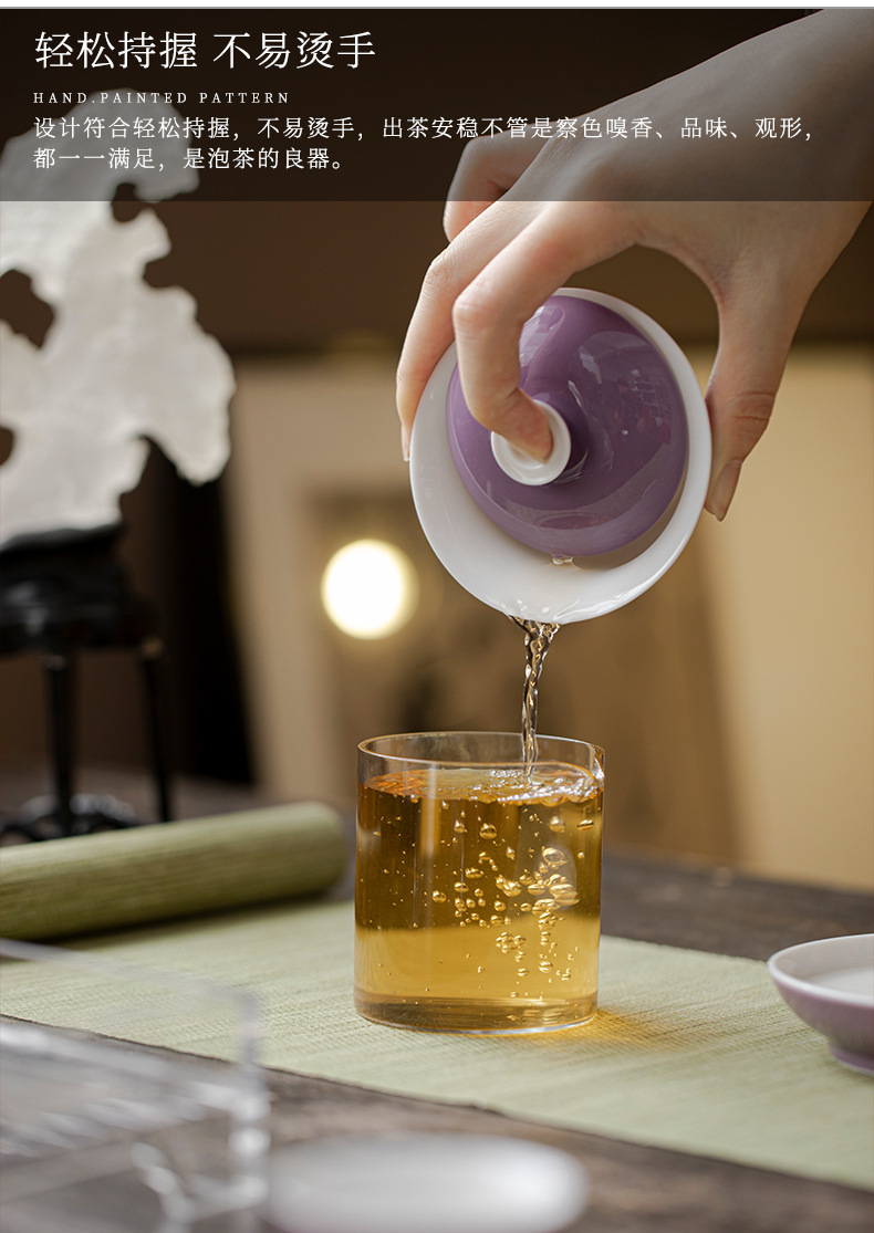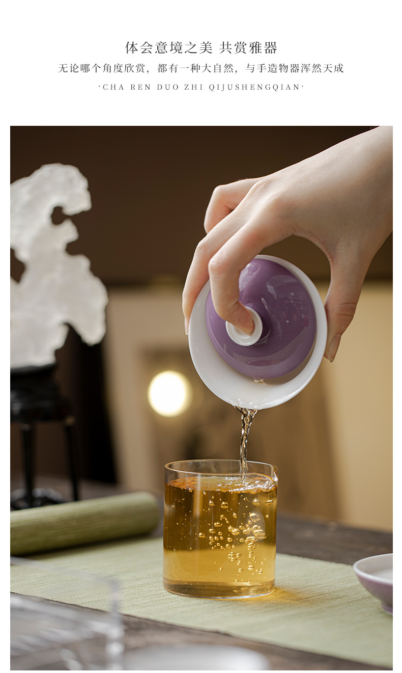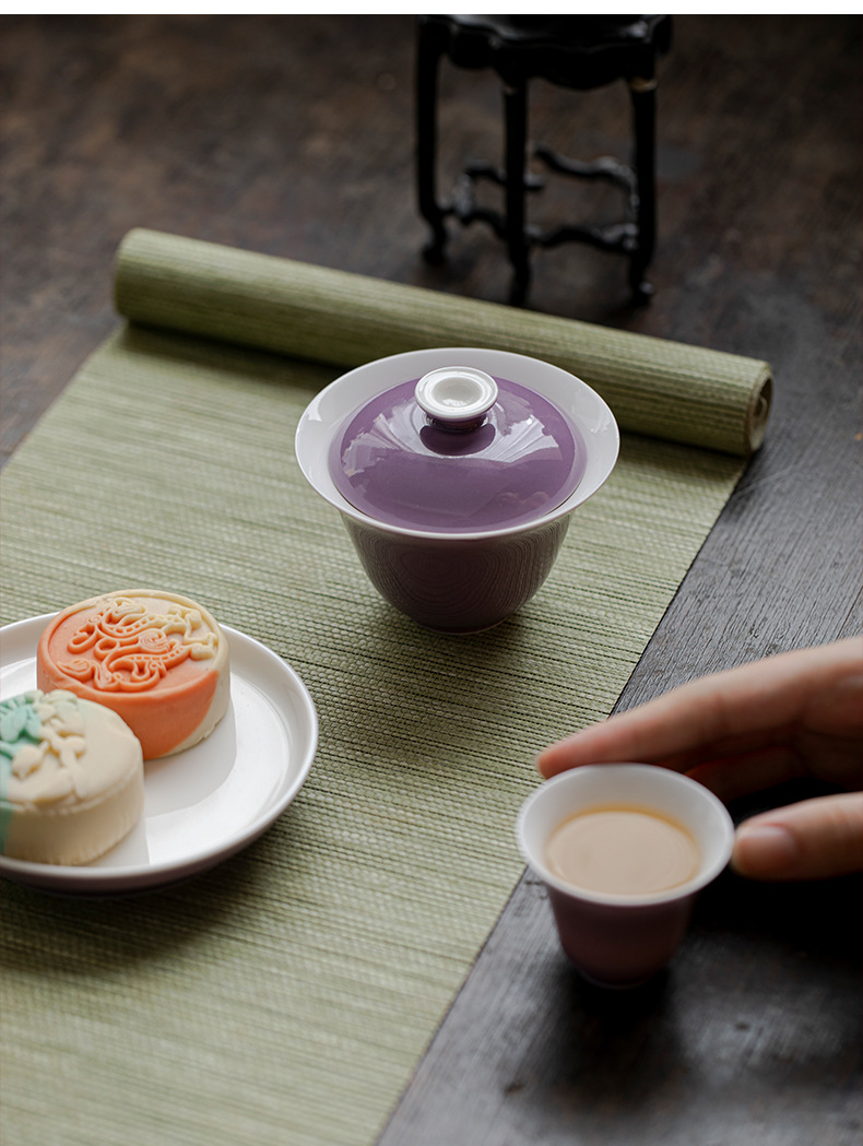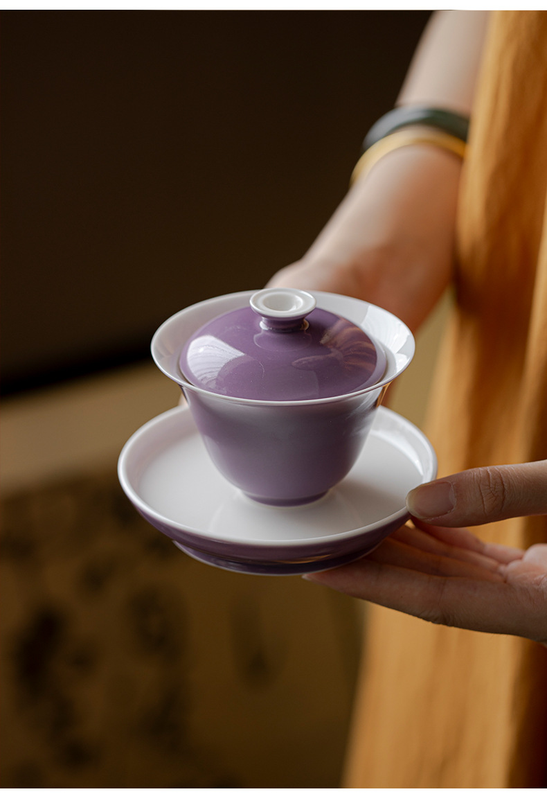 墨己木槻紫家庭用陶磁器蓋碗工夫茶器内釉松石緑薄胎泡茶碗紫蓋碗