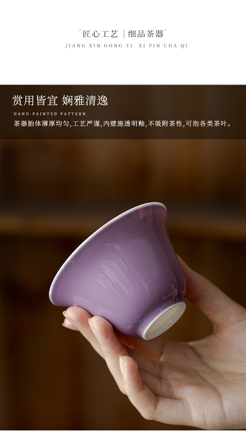 禧マグネシウム釉薬下彩紫品茗杯岩茶小容量お茶カップ家庭用陶磁器カップ客カップ小カップ