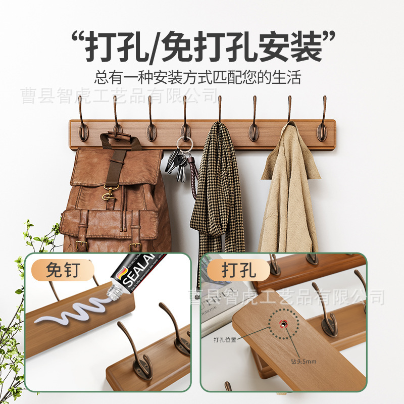 パンチフリーレトロフック木製玄関コートラック無垢材キーハンガー玄関行フック洋服ハンガー壁掛け