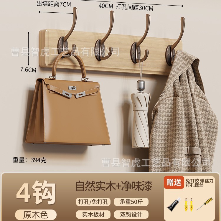 壁掛け洋服ハンガー、壁掛け洋服フック、洋服フック、玄関ドア、玄関ドア、キーホルダー、パンチングなし無垢材