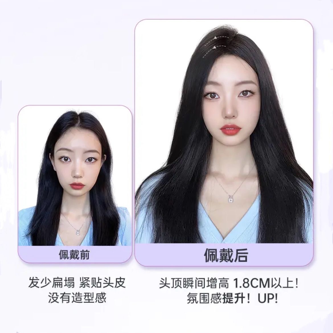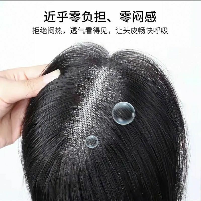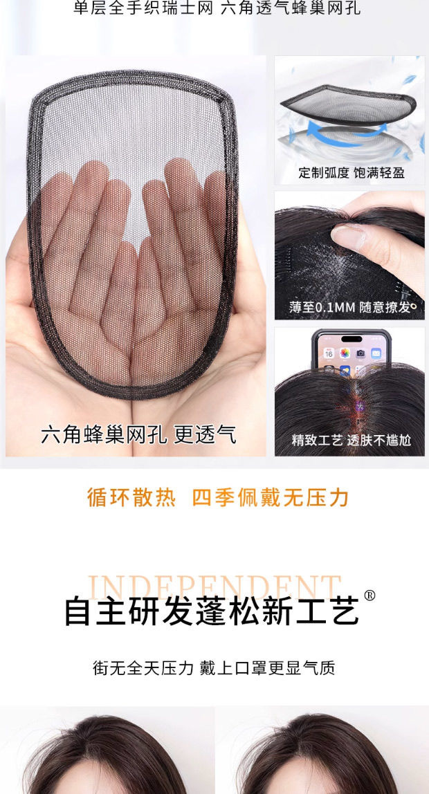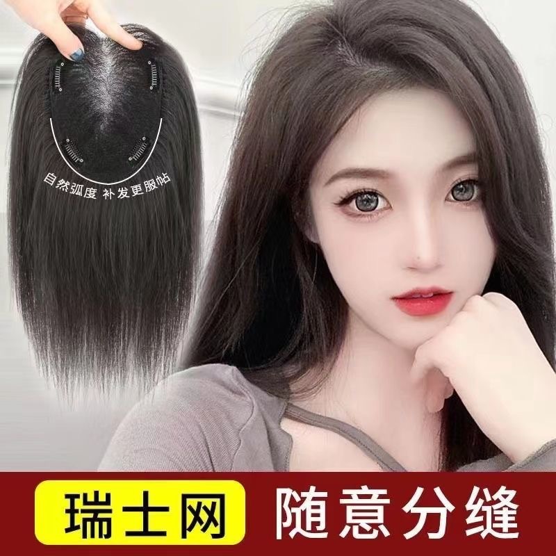 スイスネットのかつらの女性の頭の上で髪を補います。