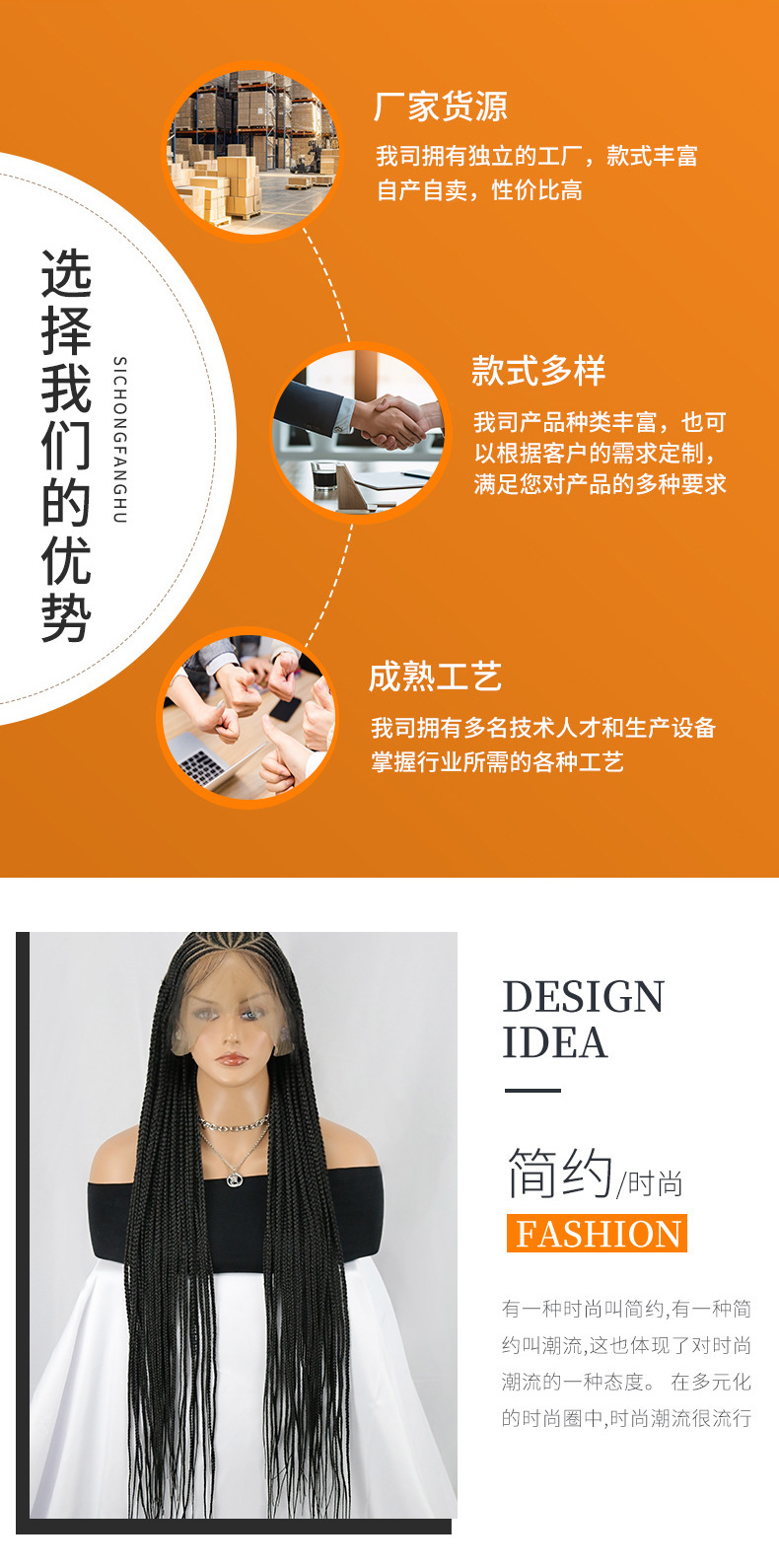 全蕾丝编织假发波西米亚风辫子假发女士方形编织化纤发欧美非洲中