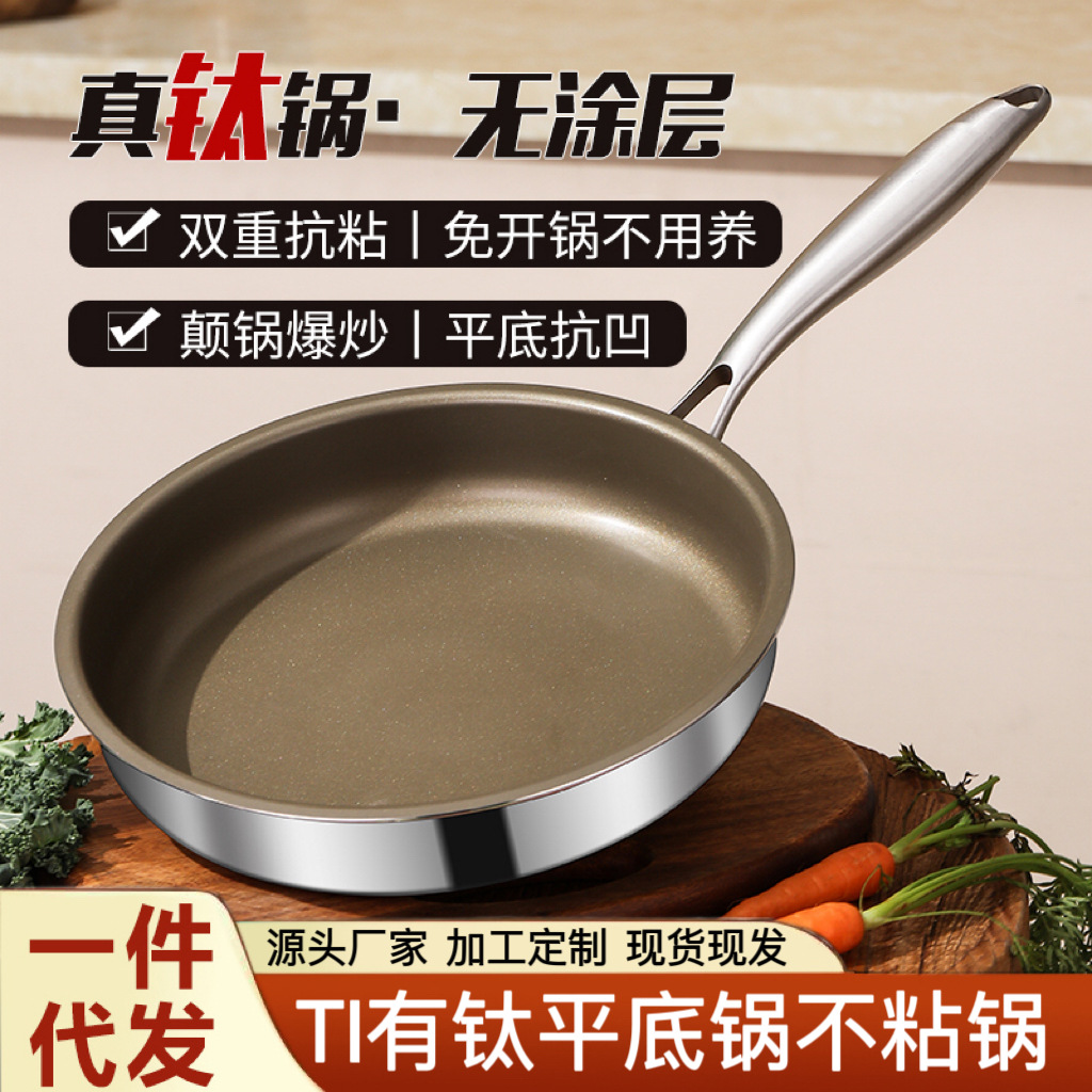 ドイツの高級チタンフライパン家庭用無塗装ステーキチタンフライパンチタン合金ノンスティックパンガスストーブチタンパン
