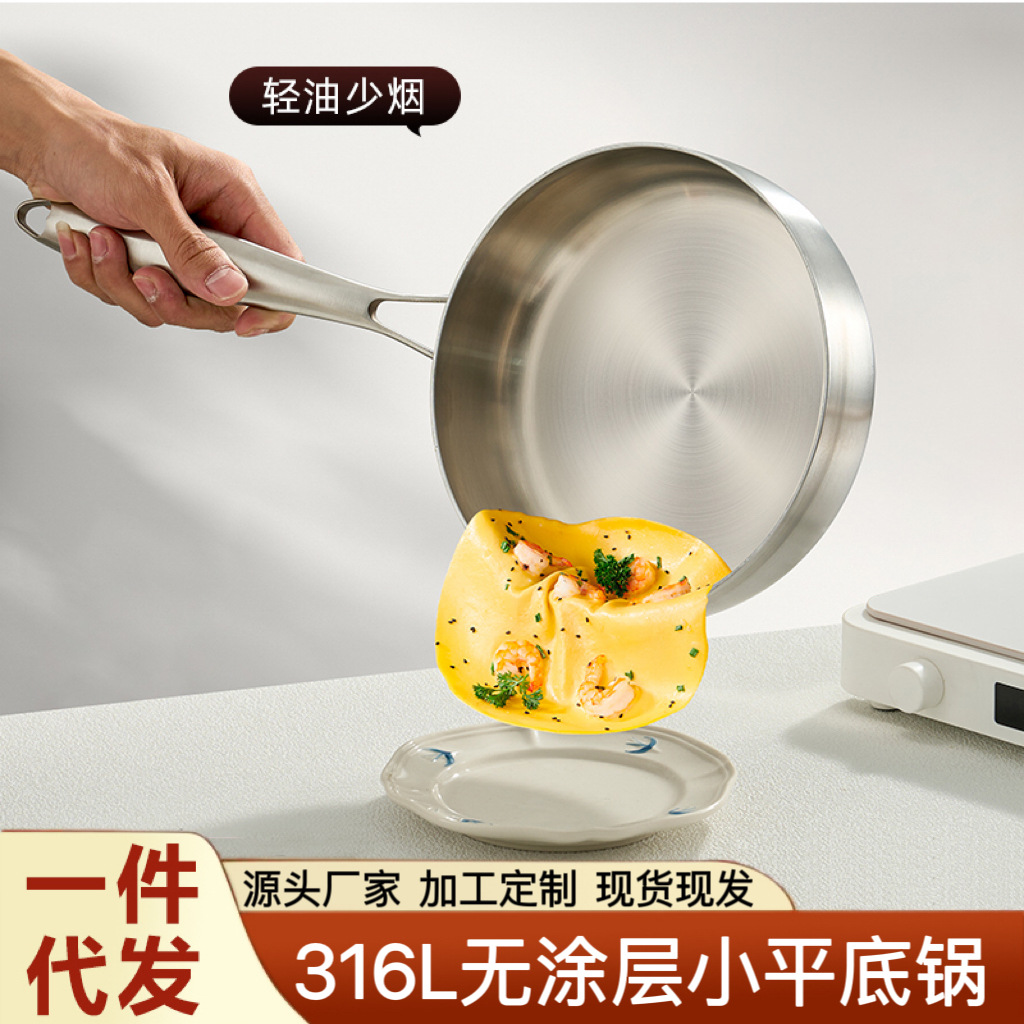 316ステンレスフライパンコーティングなしフライパン家庭用オムレツパンケーキステーキ鍋電磁炉ガスコンロ共通