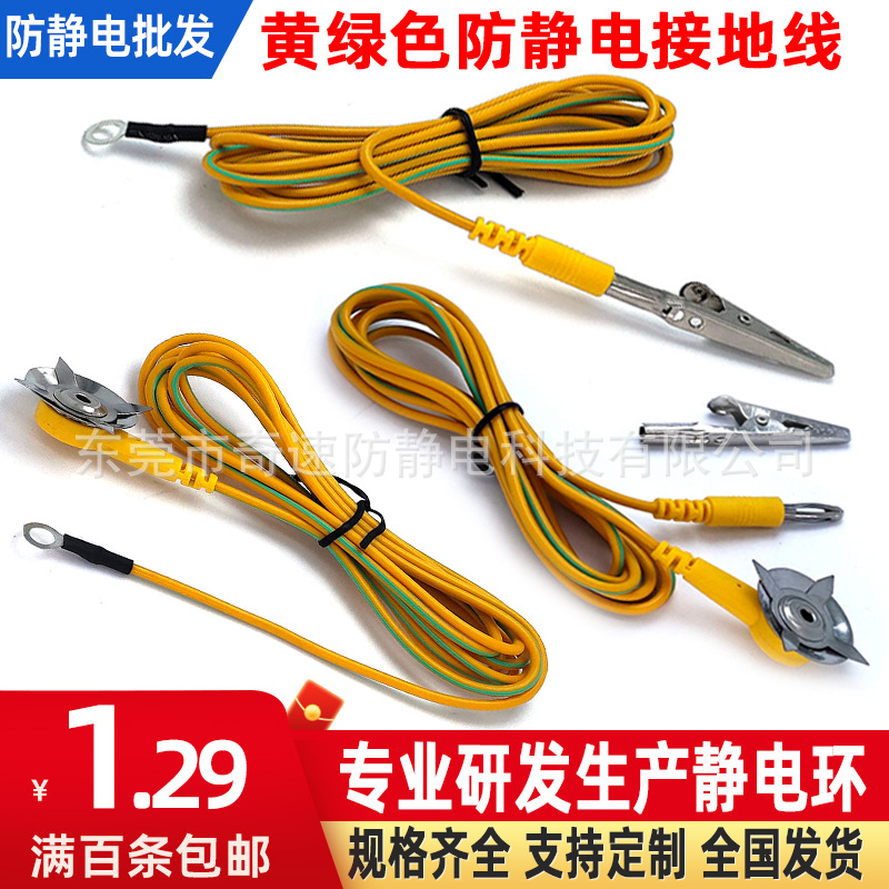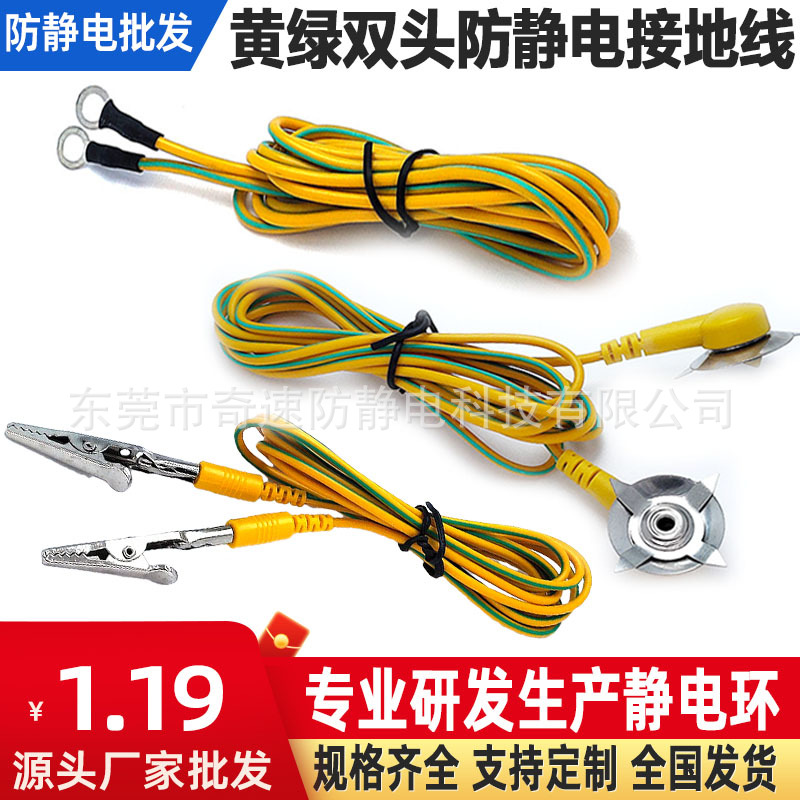 黄緑色静電気防止接地線ダブルヘッドクリップ接地ボタンダブルヘッド爪静電気ボタンダブル端子静電気除去接続線