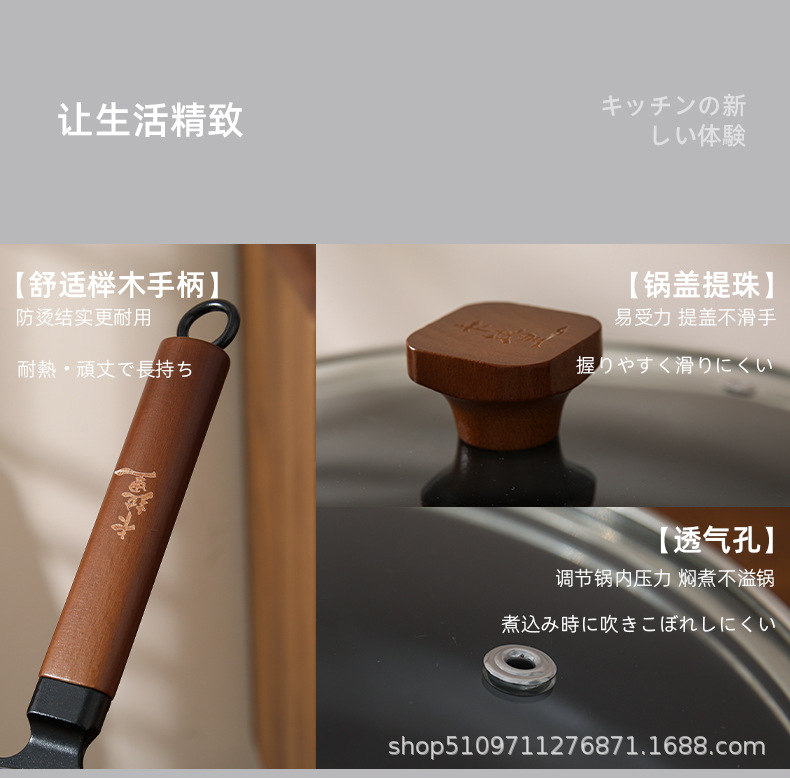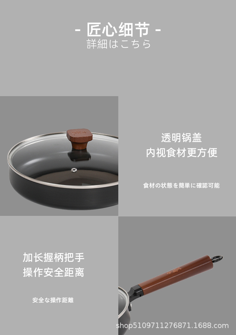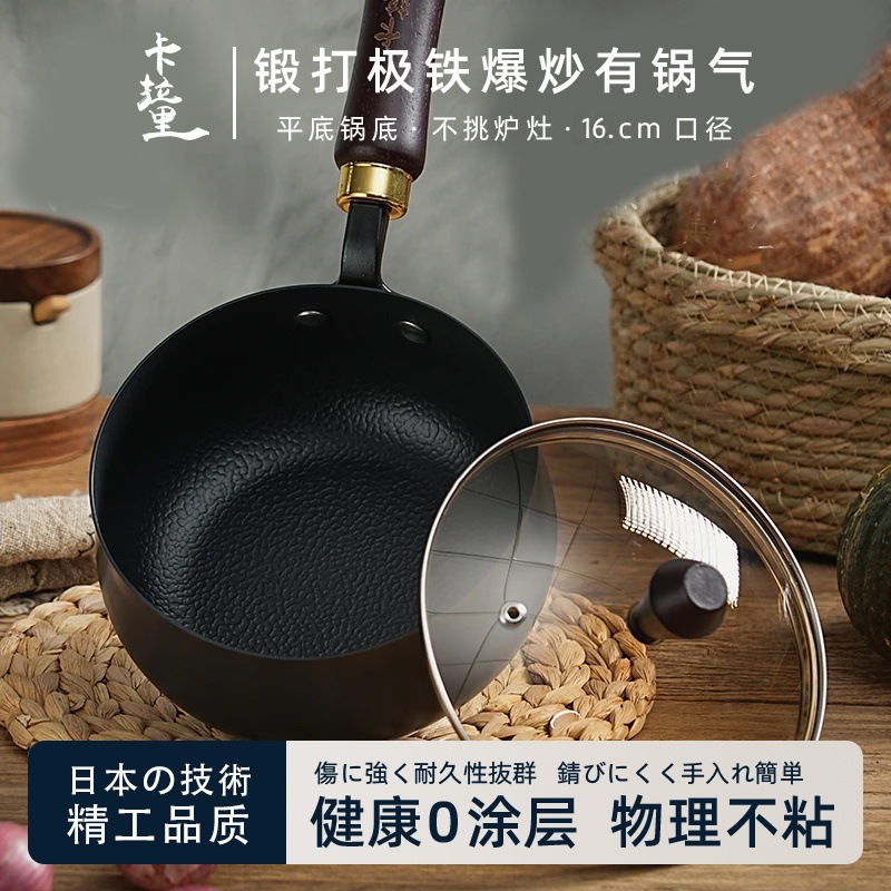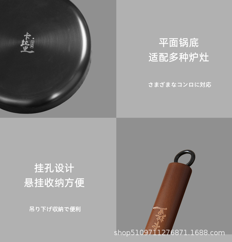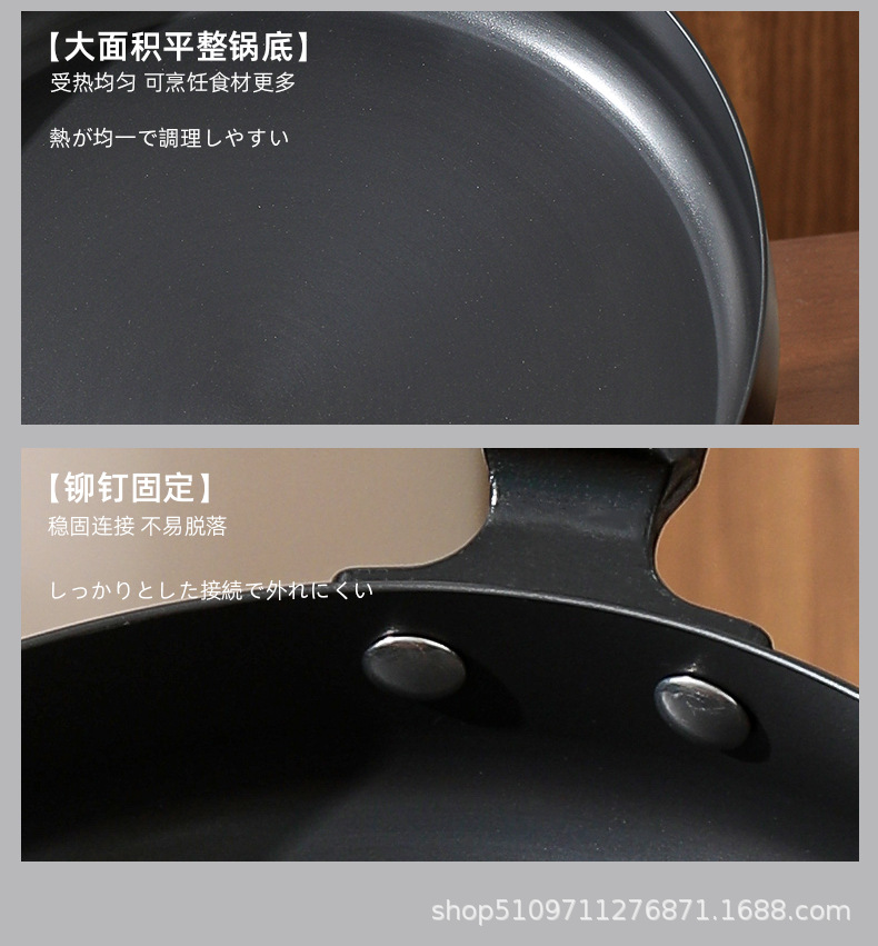日本カラリ無塗装中華鍋鉄鍋家庭用平底中華鍋ノンスティックポットガスストーブ電磁調理器ユニバーサル