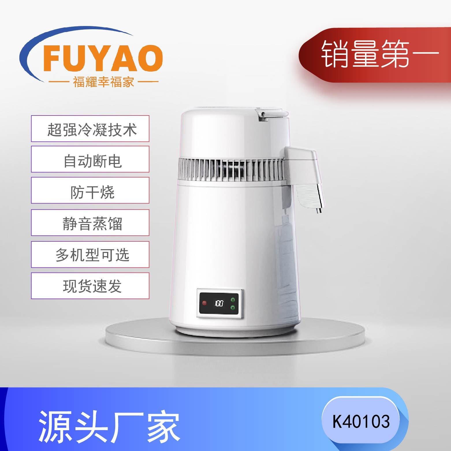 福耀電器蒸留水機歯科実験室家庭用蒸留機純露精油蒸酒機タッチパネル調温