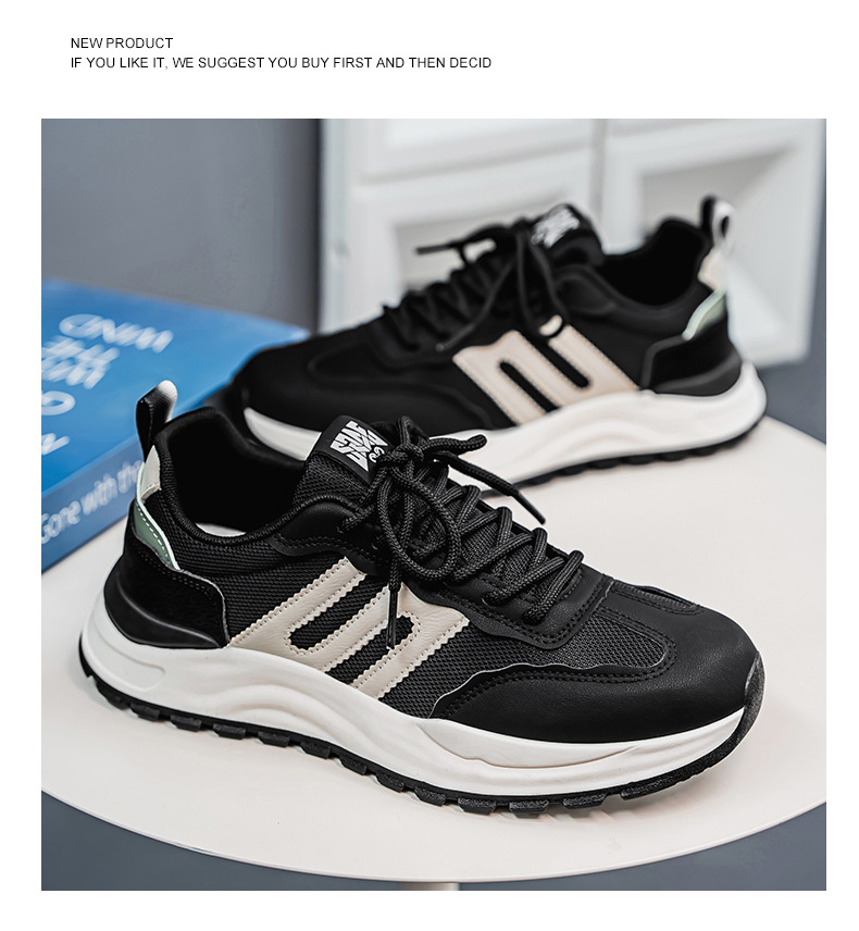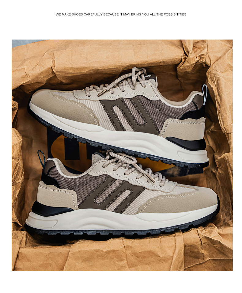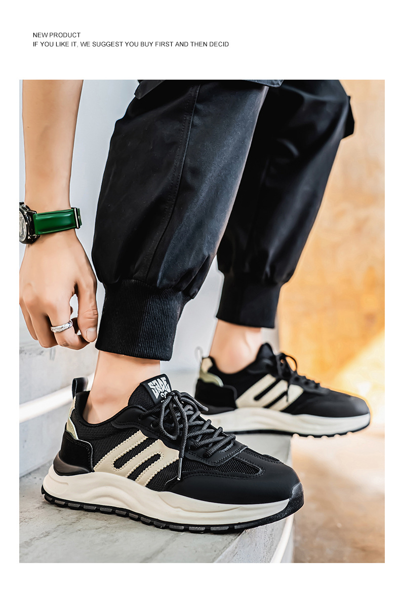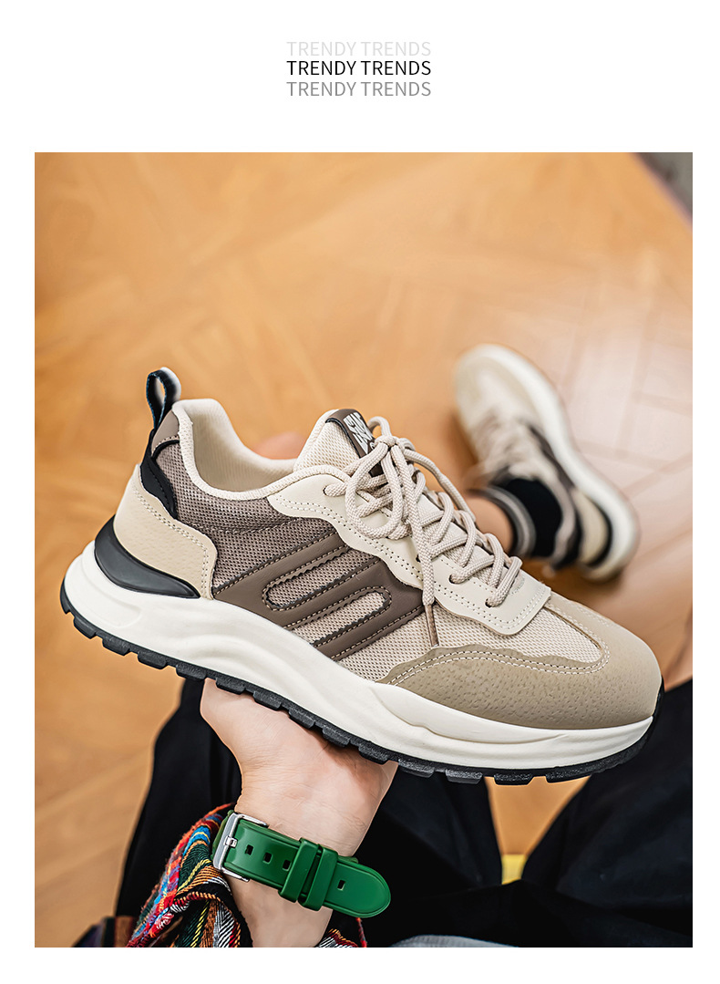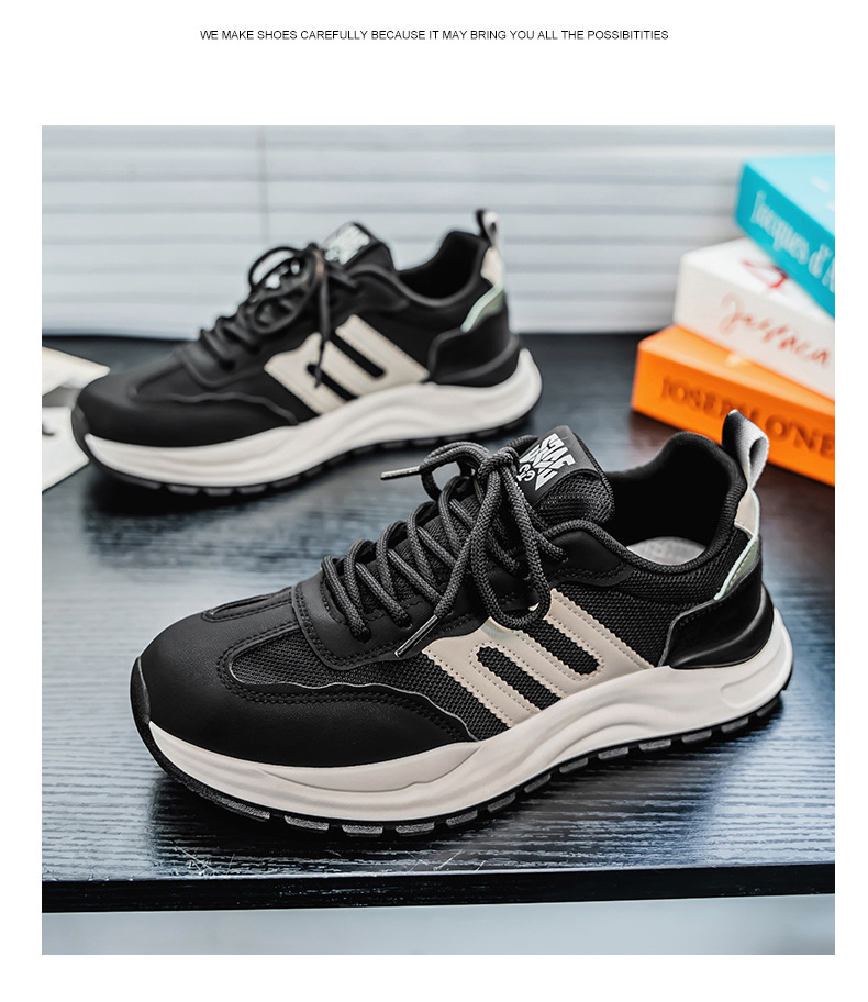 男性靴の新型2025春のネットの流行防臭は学生の運動のカジュアルシューズの厚い底の耐摩耗性のお父さんの靴を合わせます。