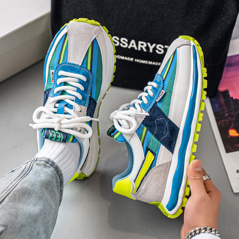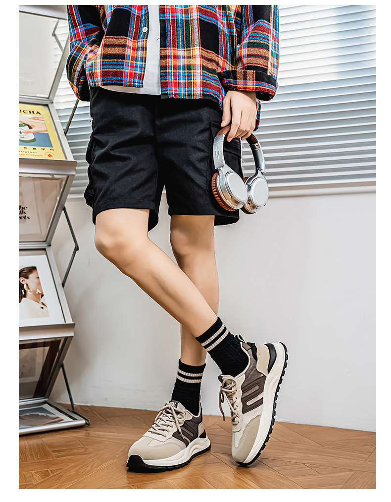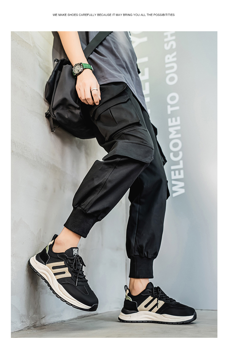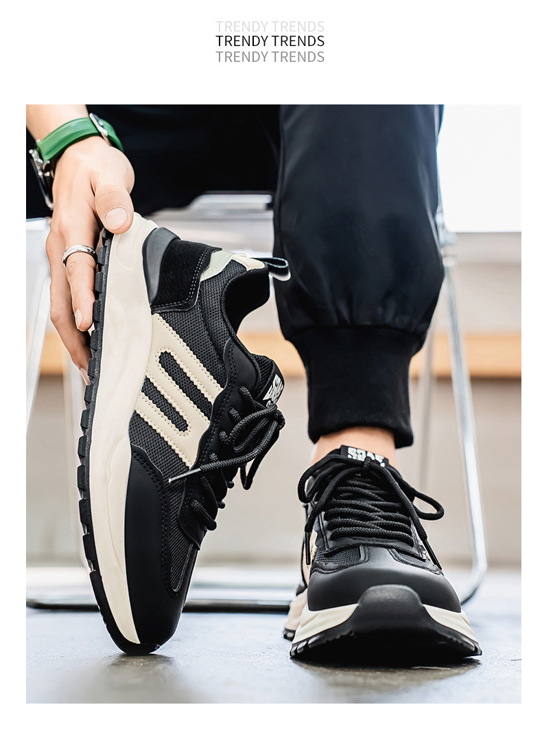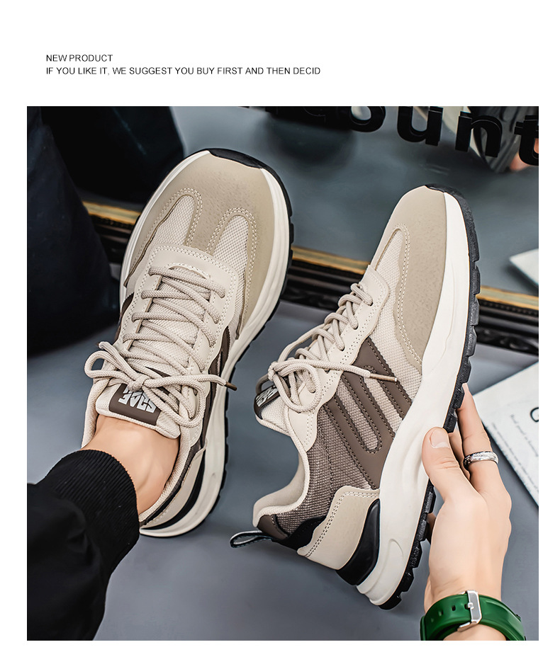 男性靴の新型2025春のネットの流行防臭は学生の運動のカジュアルシューズの厚い底の耐摩耗性のお父さんの靴を合わせます。
