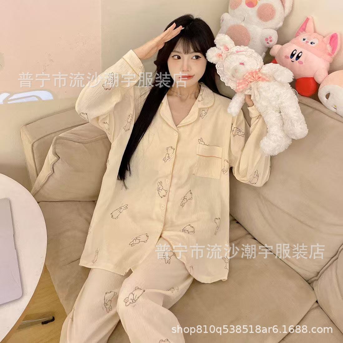 工場対外貿易春秋金雲綿パジャマ女性漫画襟付きカーディガン女性長袖長ズボン家庭服セット