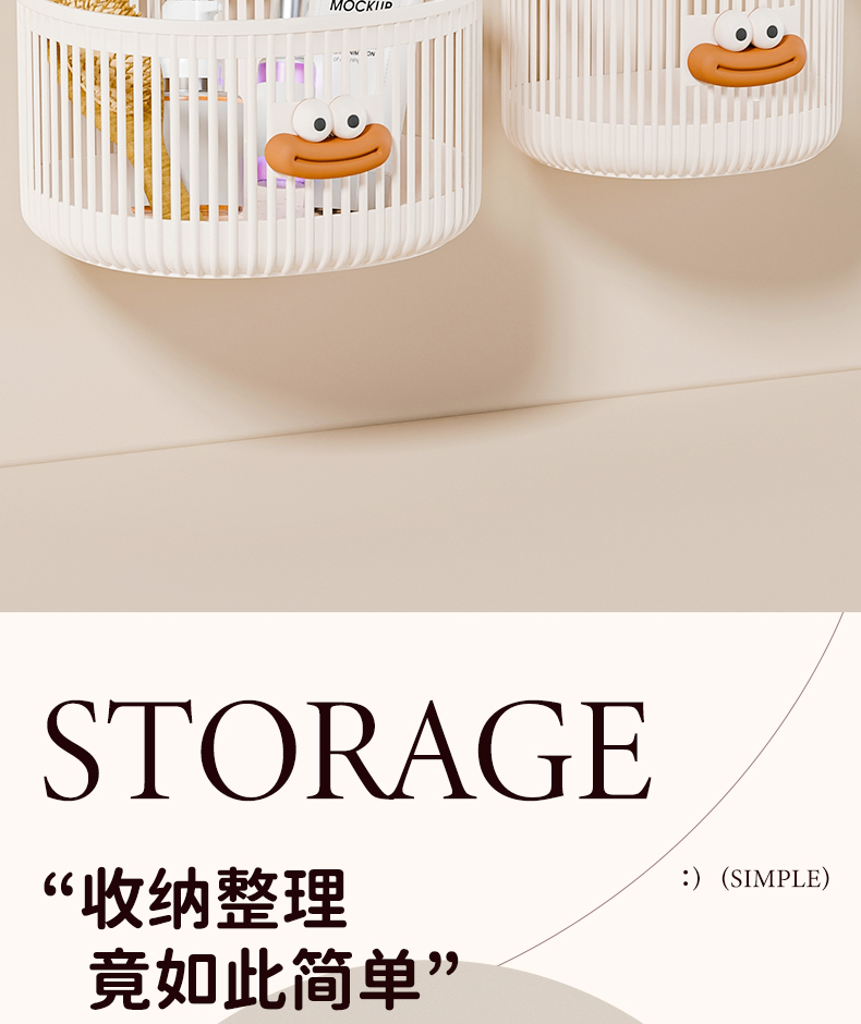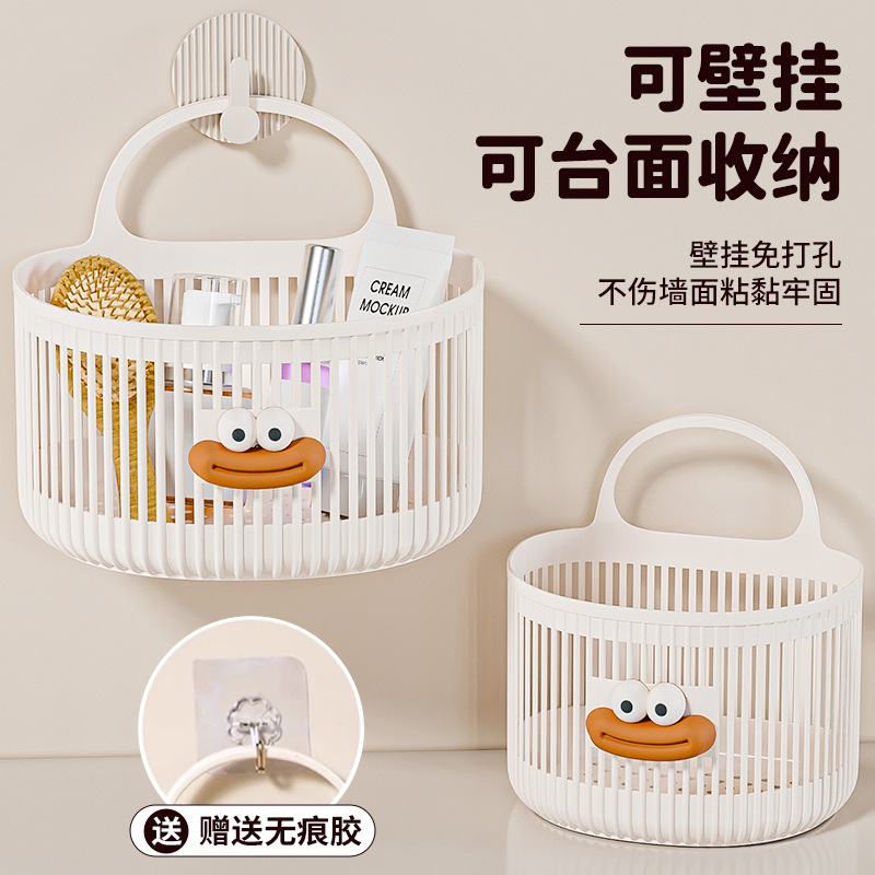 可爱壁挂式收纳篮多功能厨房浴室卫生间小挂篮免打孔挂墙置物架子