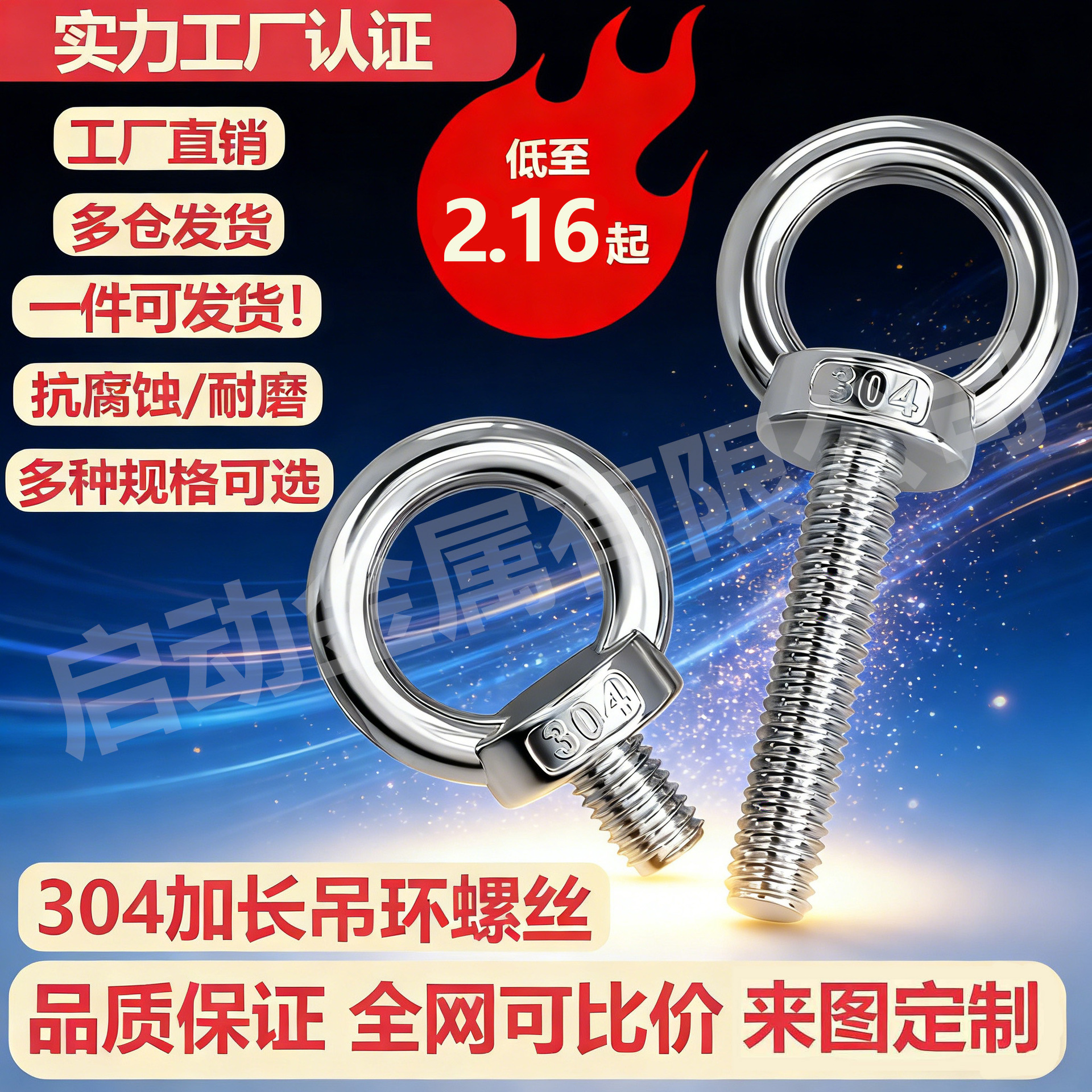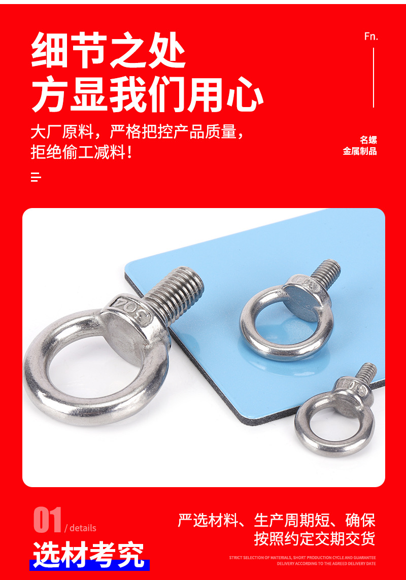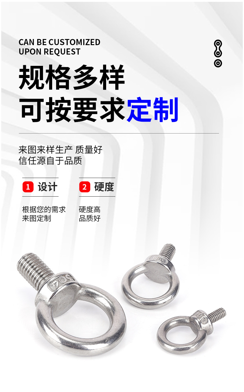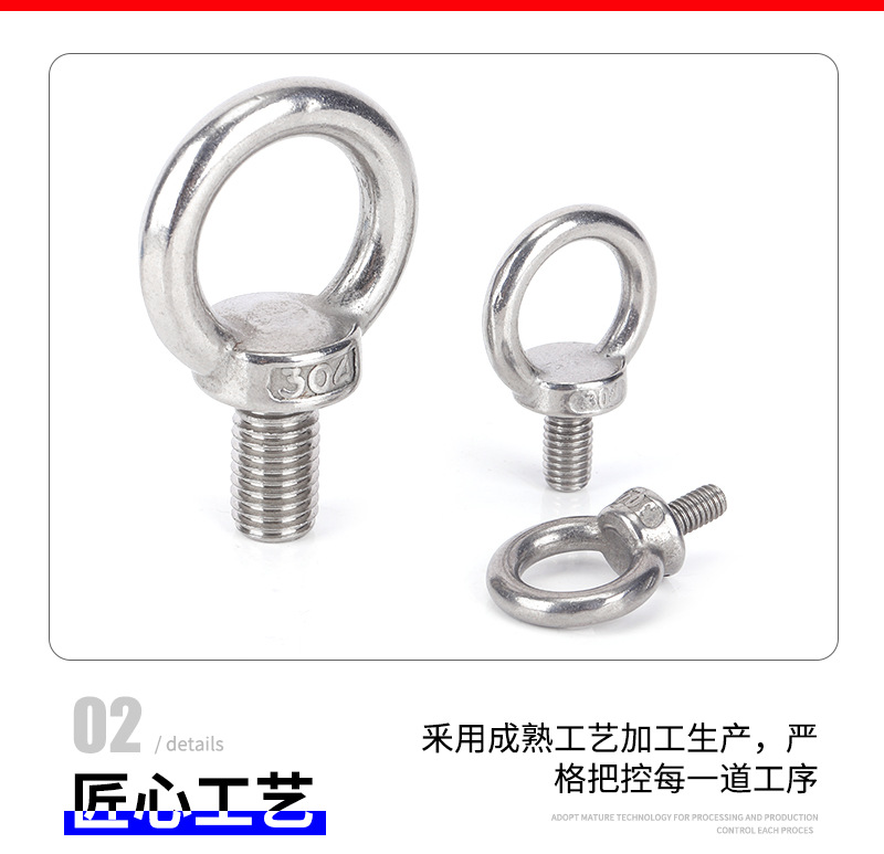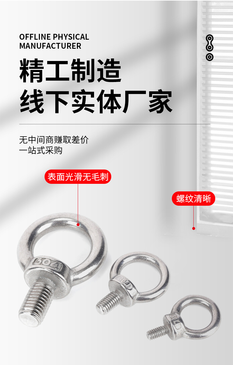 メーカーは304ステンレスのアイボルトを供給しています。耳のネジを長くしています。輪付きクレーンアイボルトのM3-M48です。