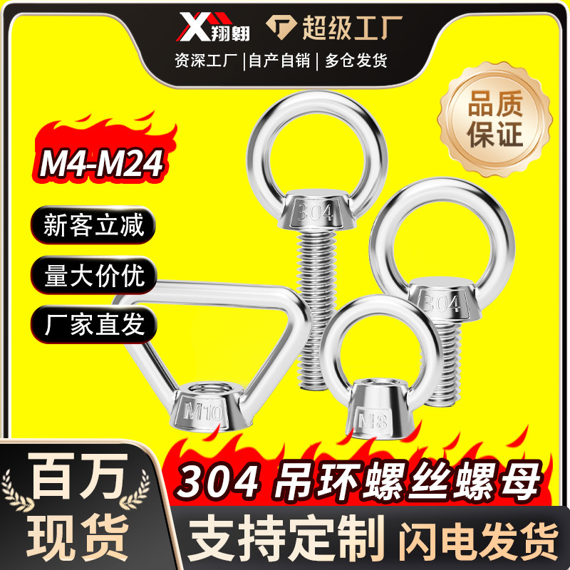 304ステンレスアイボルト環状延長リングナット船用クレーンねじM3M5M8-M36