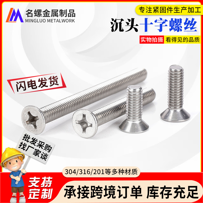 304 ステンレス鋼皿頭十字小ねじ平頭十字穴付き小ねじ皿ボルト M1.6-M10