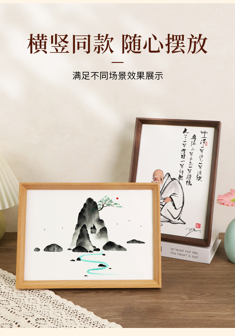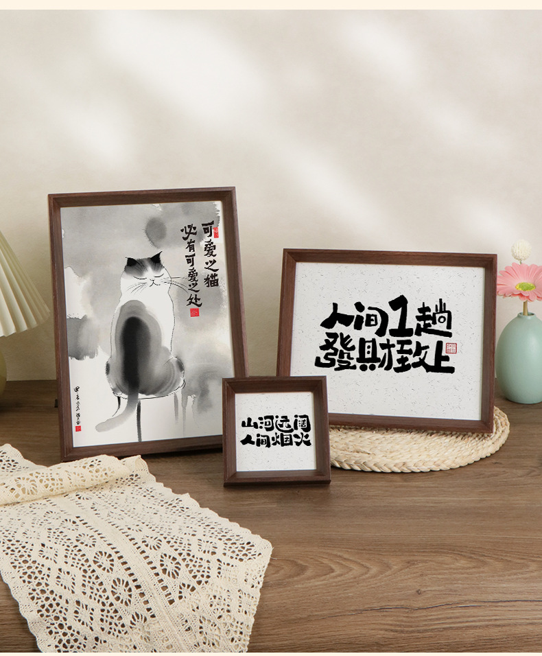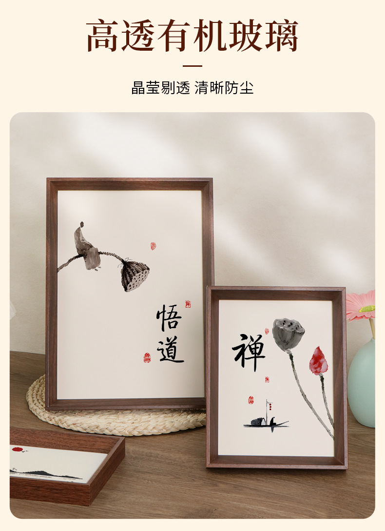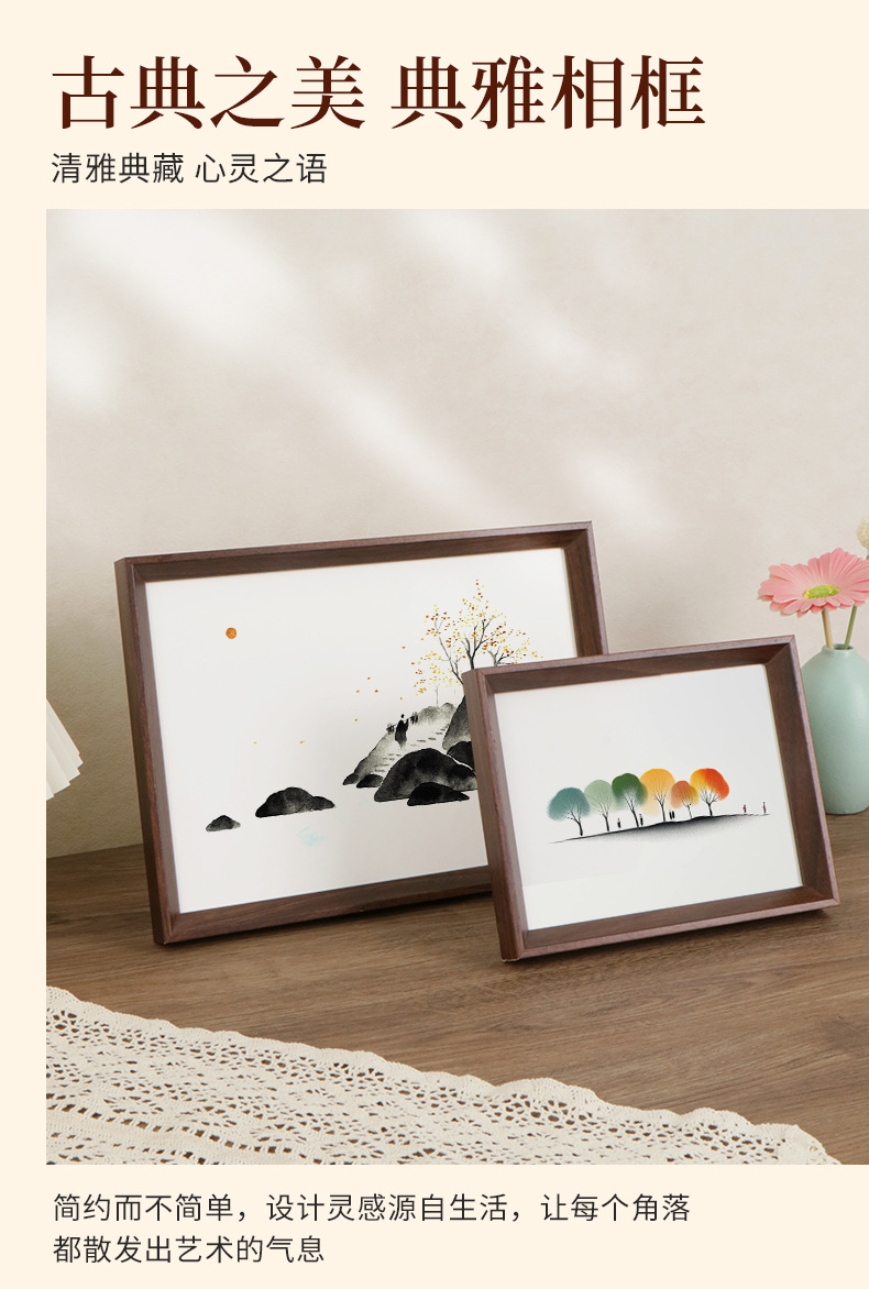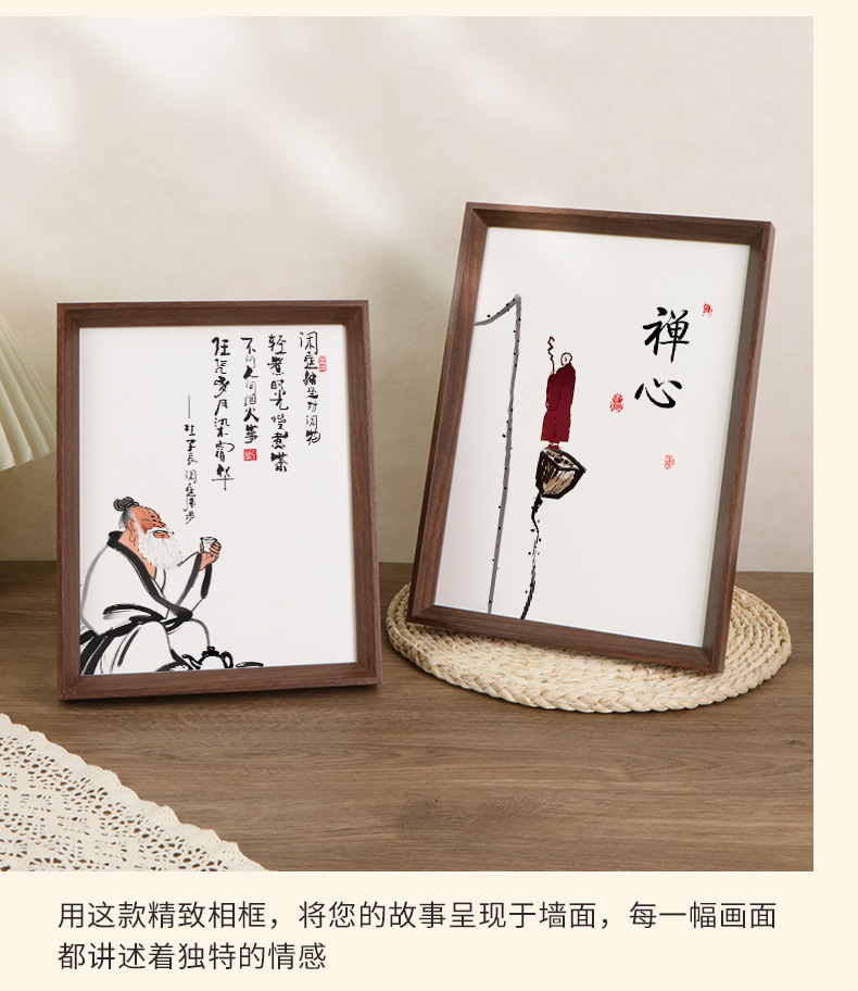 黑胡桃实木榫卯画框摆台6寸相框A4双面透明磁吸实木相框空框装裱