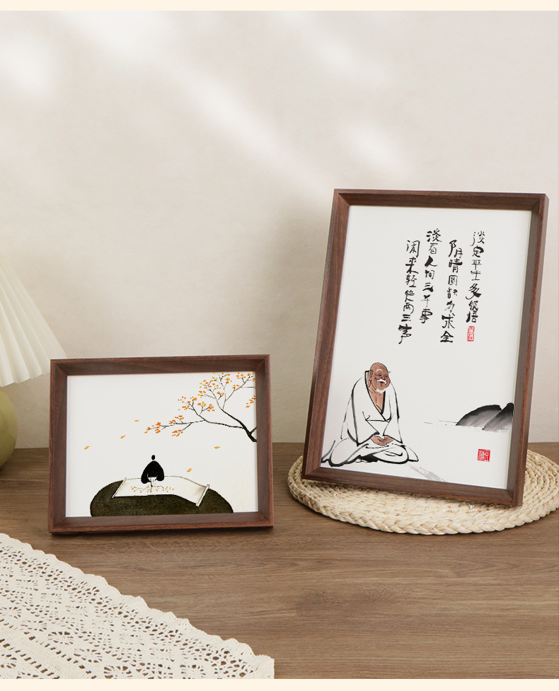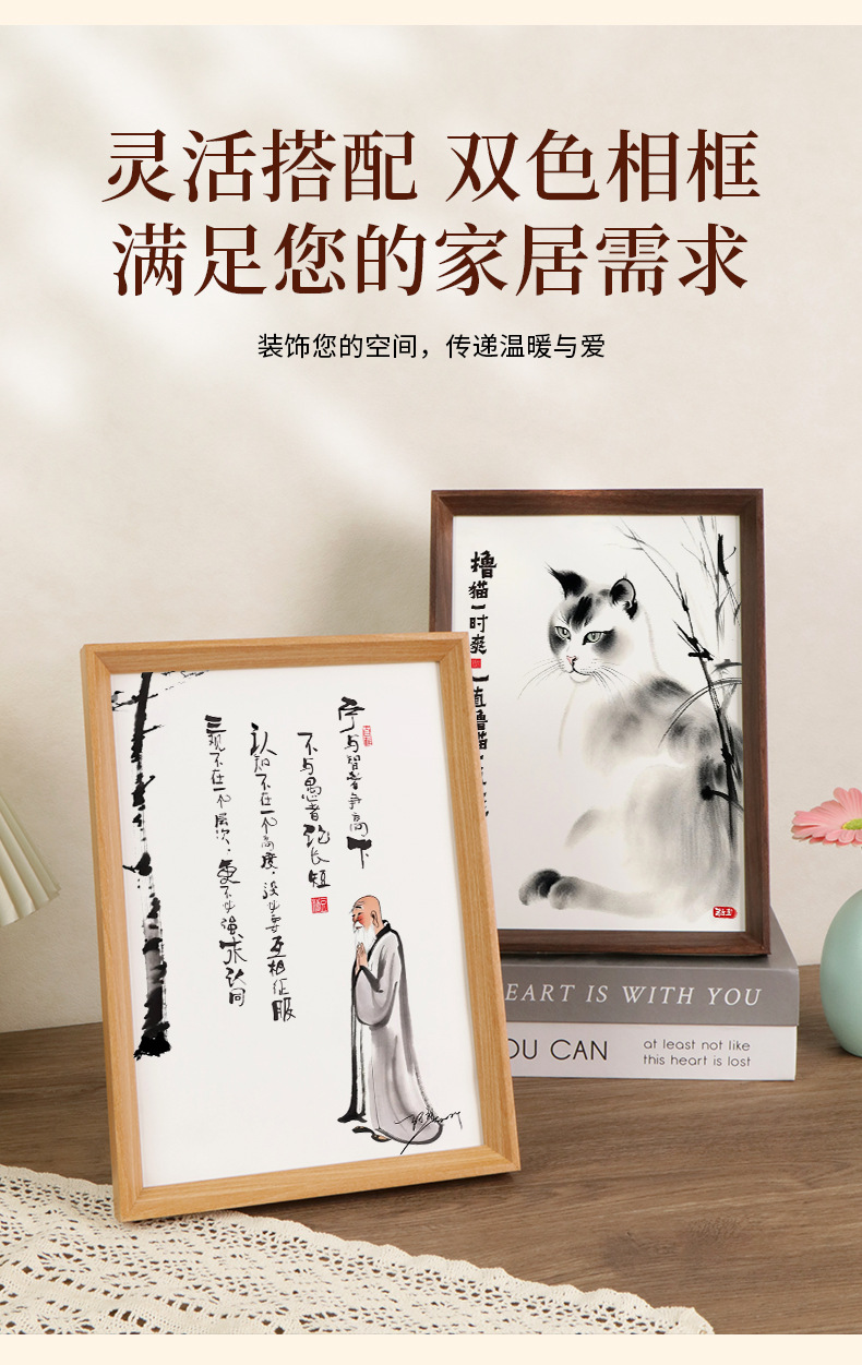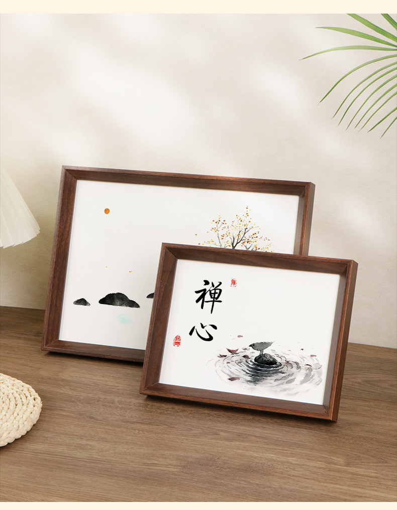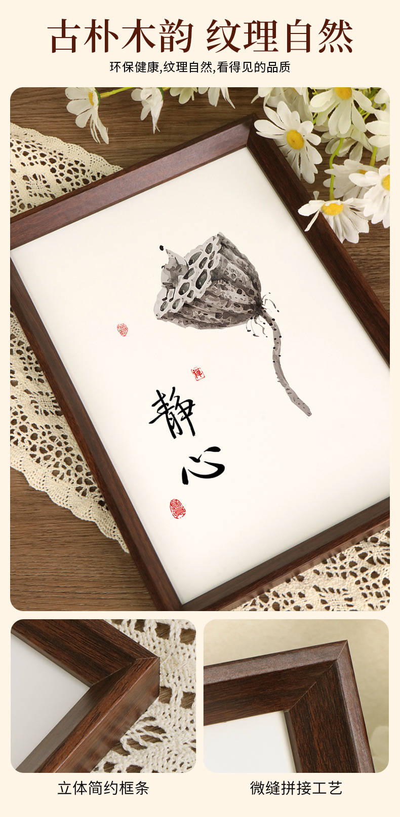 黑胡桃实木榫卯画框摆台6寸相框A4双面透明磁吸实木相框空框装裱
