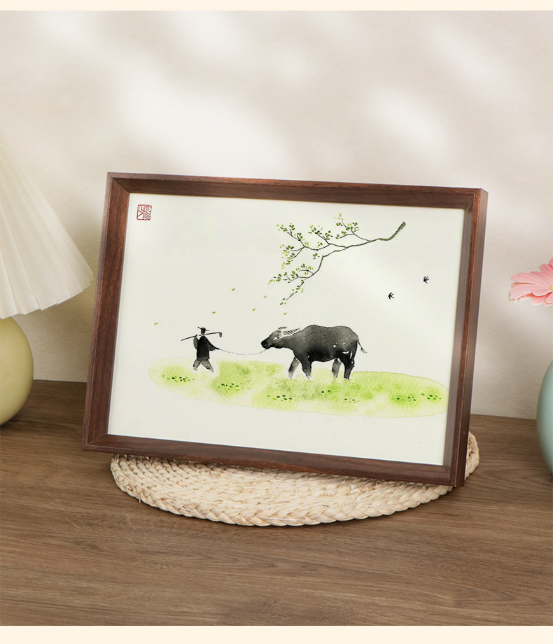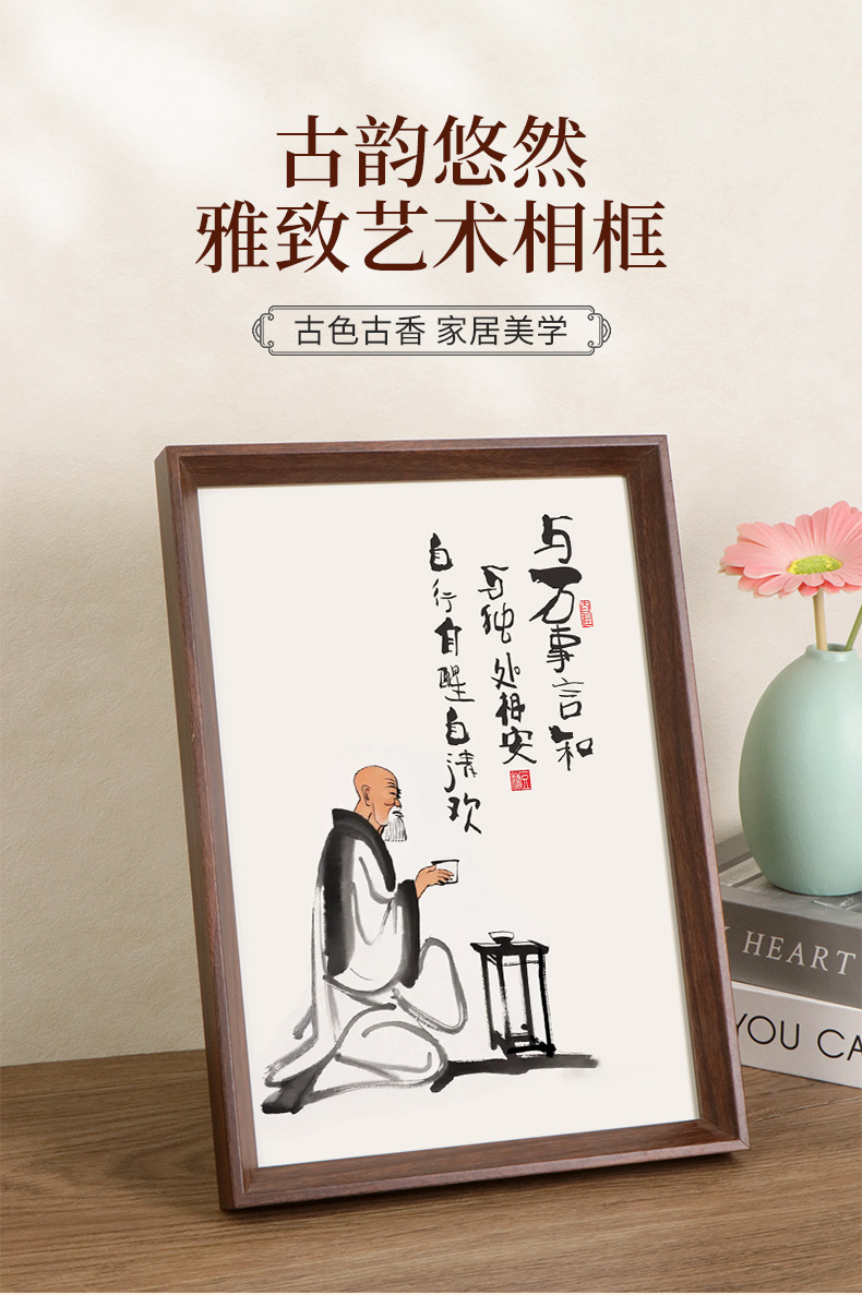 新しい中国式の4寸の創意的な書道の小さいフォトフレームは台の客間の部屋の装飾品の額縁の事務室のデスクトップの置物を並べます。