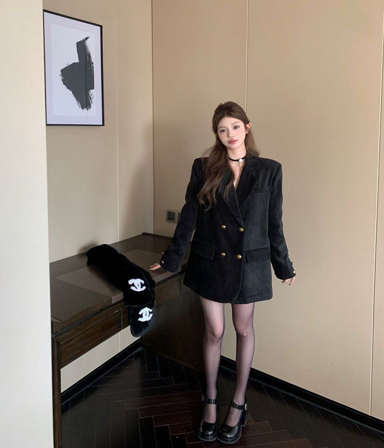山力達迪雪尼爾の黒いコートの女性の秋冬の小さい香風の小さい大衆のスーツの新型の気質はスーツを厚くします。