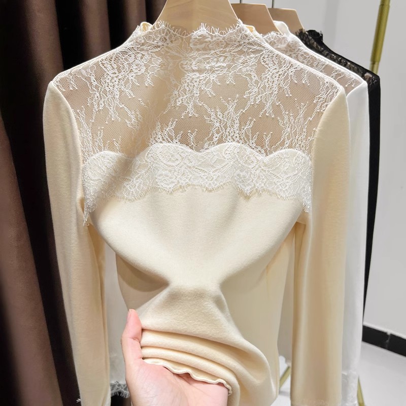 山力達迪【人の収集】半高襟の透かし彫りのレースは底のシャツの女性の春の冬の感をつなぎ合わせて毛の徳の絨毯を磨いて保証します。