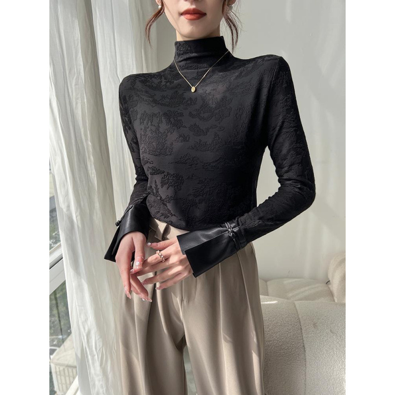 山力達迪【人の収集】新中国式の半高襟の黒い底のシャツの新型の女性の秋冬の国風の長袖のT