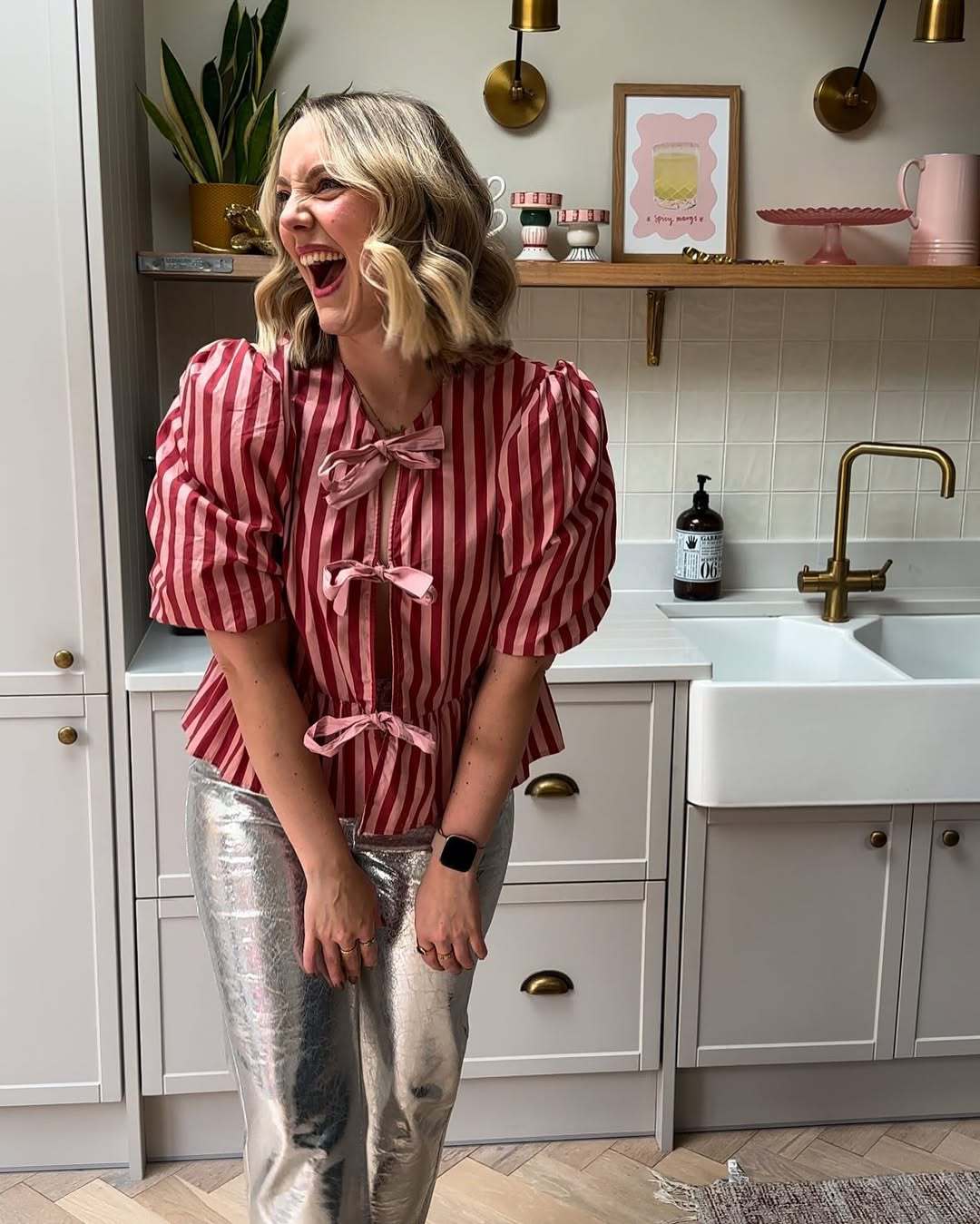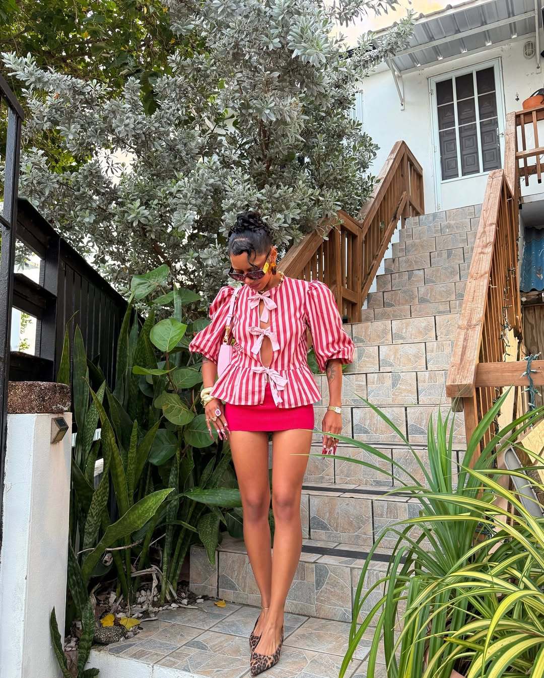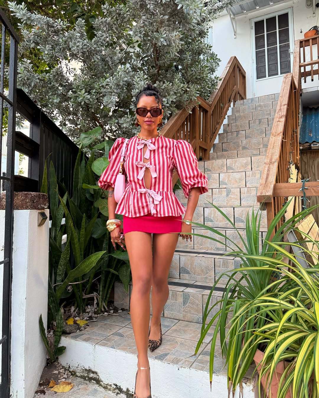 新しいストライプの帯の五分袖は腰のシャツの上着を収めます。
