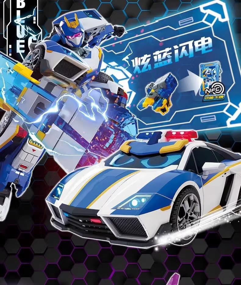 現物正規版玩具自慢カード闘士変形合体自慢ブルー稲妻自動車ロボット召喚器児童新年