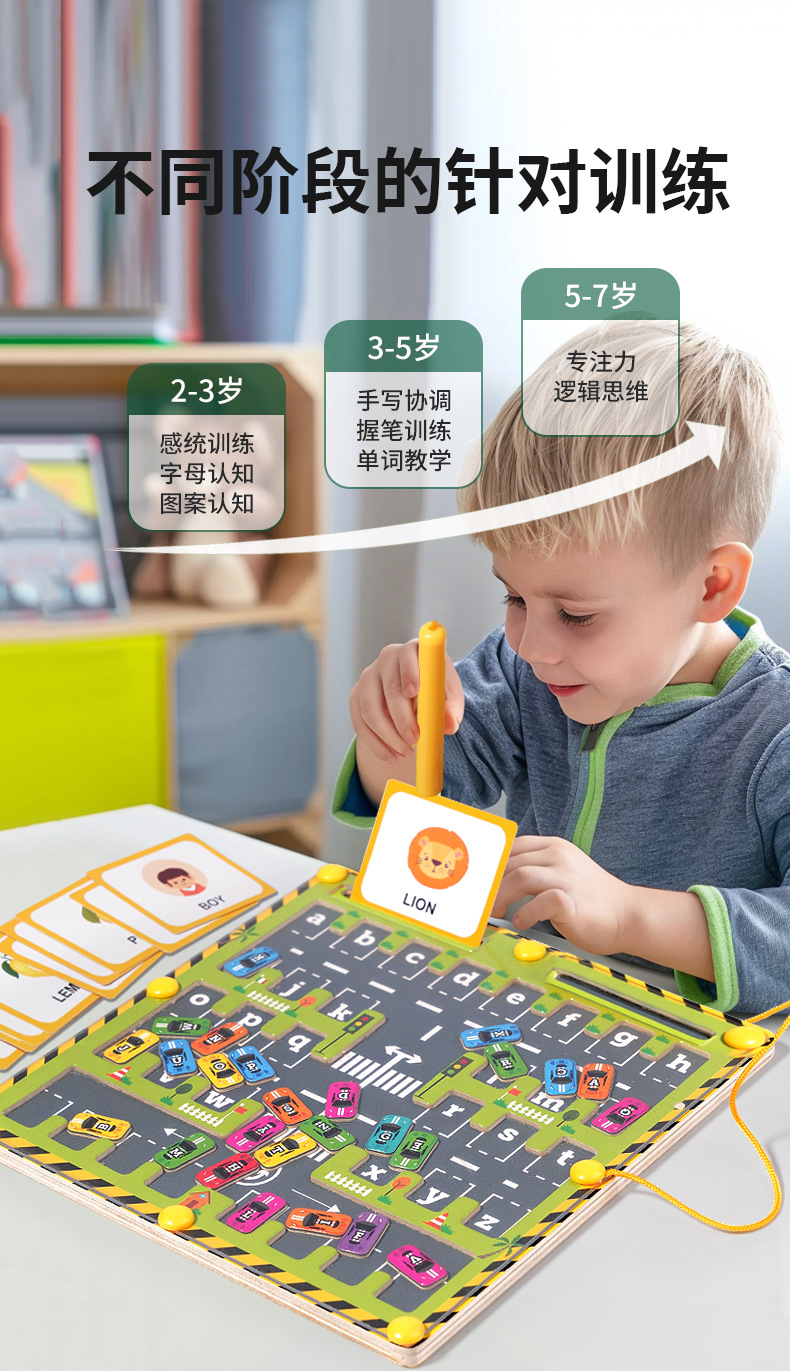 幼児磁気迷宮走珠磁気運筆磁気吸鉄ボール集中力トレーニング知育玩具3歳から6歳