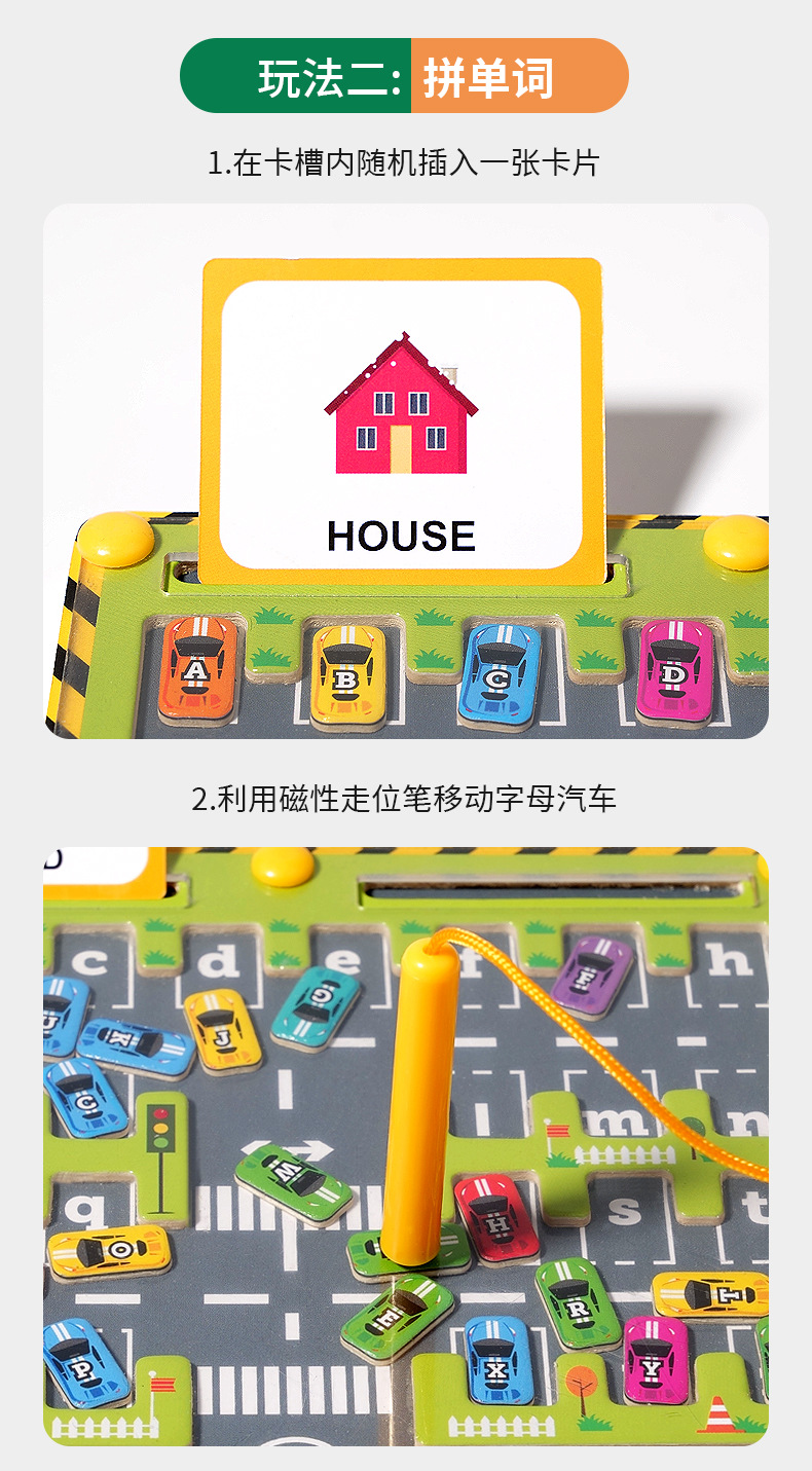 木の小さい列車はバックして計数板のおもちゃの磁気の迷宮を入庫します。