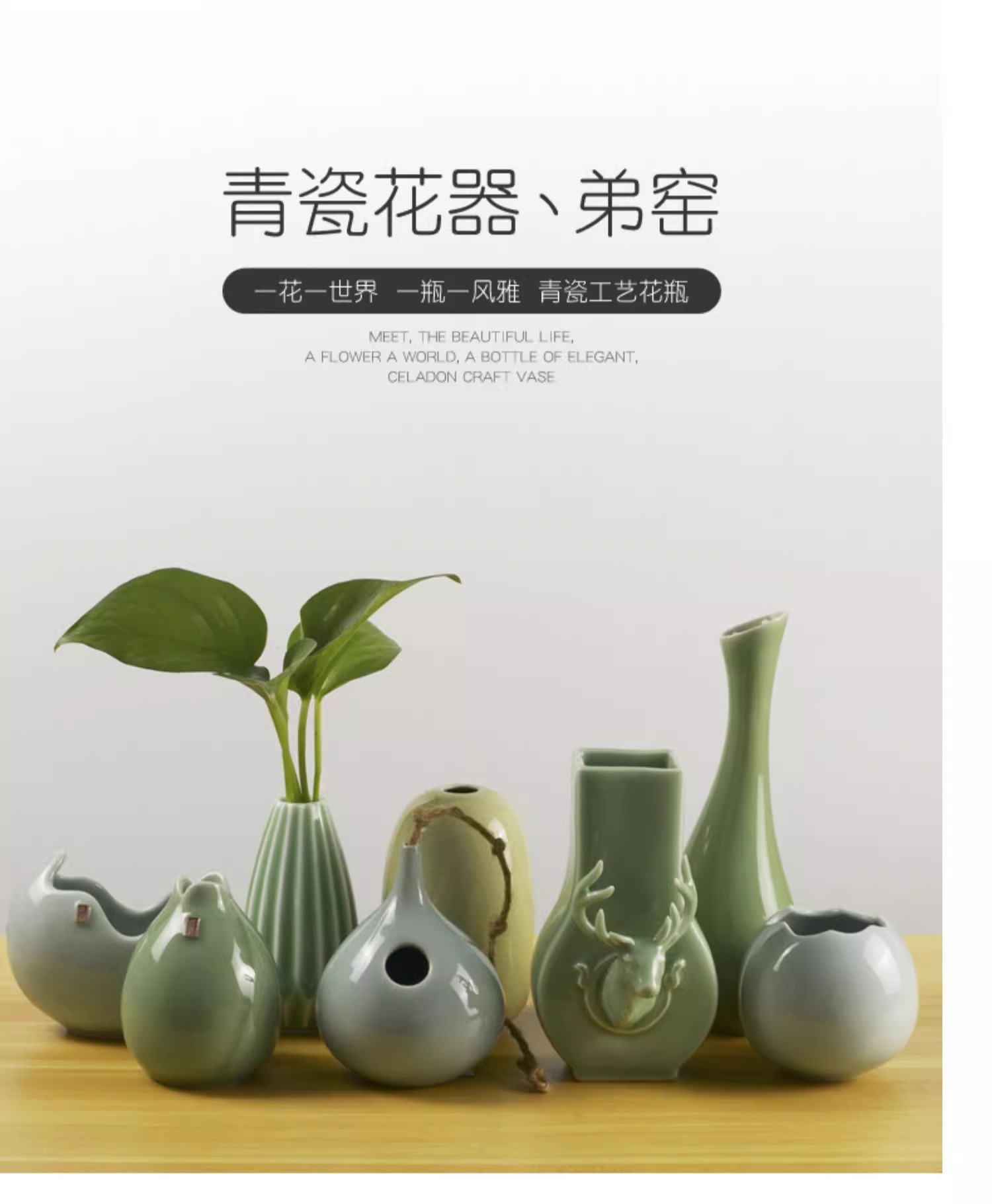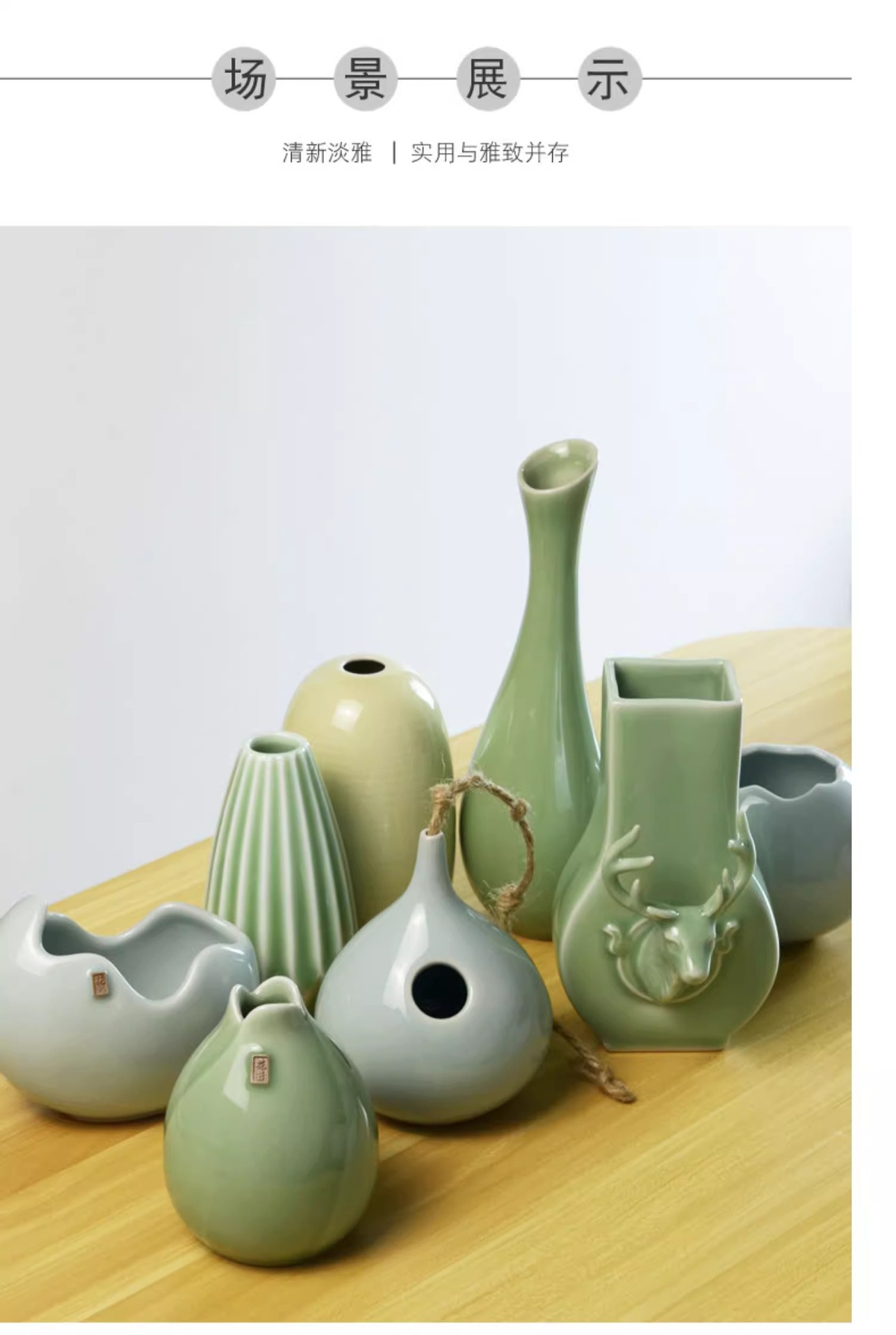 創意の青磁の置物の室内の装飾品の手作りの個性の水培器の花の花は小さい花瓶のメーカーに挿します。