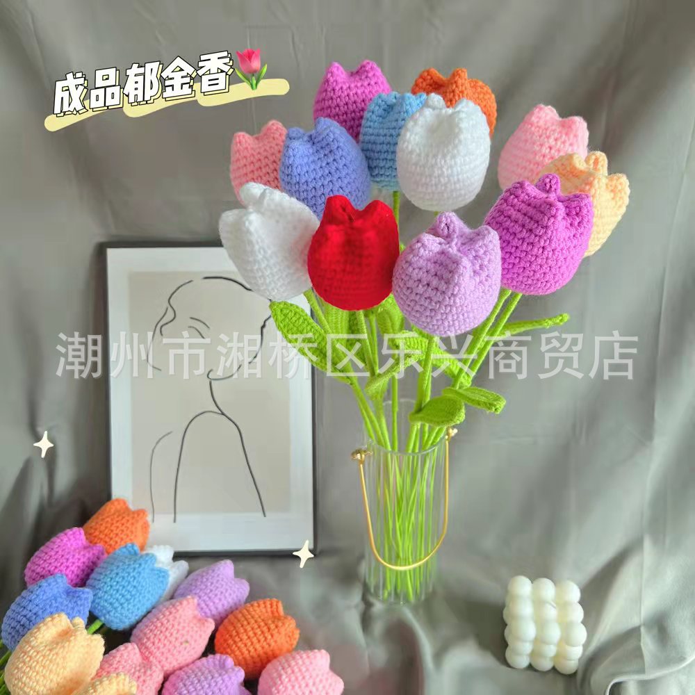 毛糸手作りかぎ針編み花束チューリップカーネーション模造花編み毛糸花祭りクリエイティブギフト